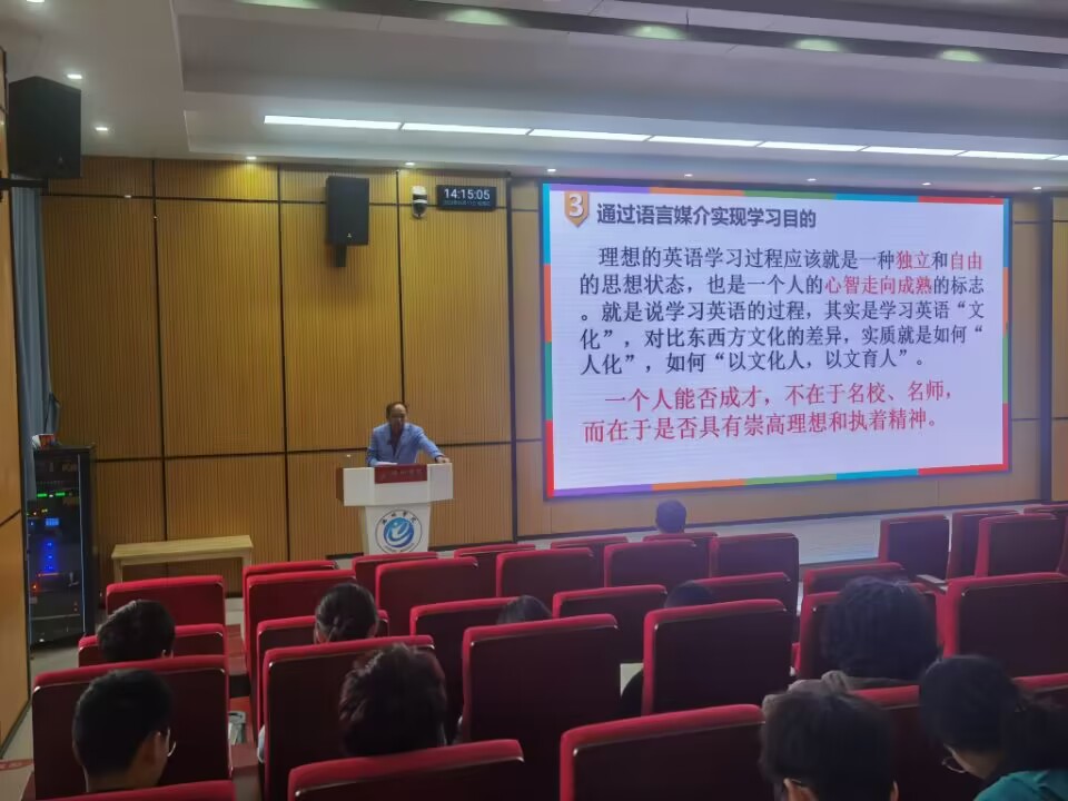 5月11日下午,淮北师范大学教授、硕士生导师叶小宝为外国语学院师生作题为《求“真”务“实”的英语学习观》的学术报告。报告会由外国语学院院长余义兵主持。