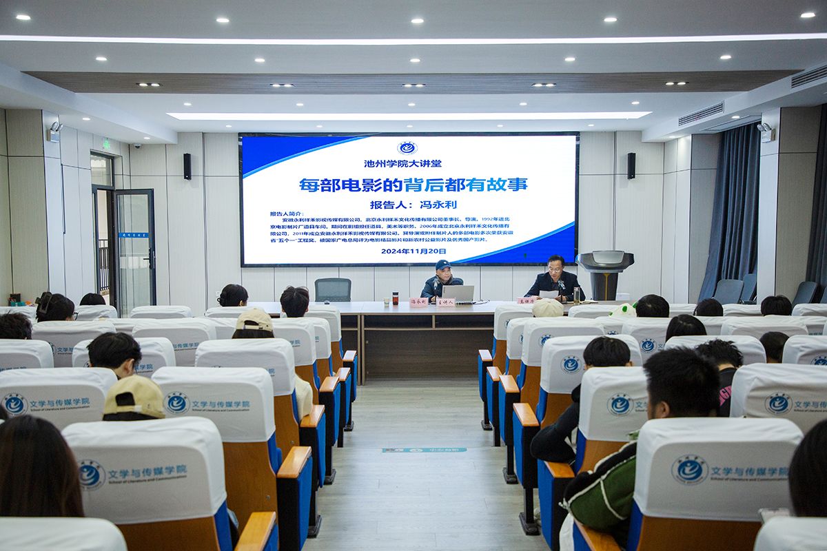 11月20日下午,知名电影制片人、导演冯永利先生应邀在博物楼视听实训室作了题为“每部电影的背后都有故事”的学术报告。报告会由文学与传媒学院副院长高祥华主持,传媒专业师生代表参加。