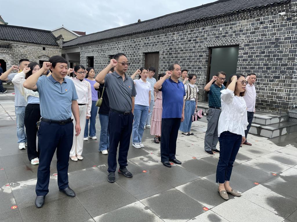 各支部党员参观了纪念馆展厅和中共沿江县委旧址,观看了党性教育纪录片,认真了解沿江英雄儿女在中共沿江中心县委的领导下,前赴后继、英勇奋斗、不怕牺牲、浴血抗日的红色历史,接收革命传统教育。在纪念广场上,全体党员庄严、肃穆地高举右手,重温入党誓词。