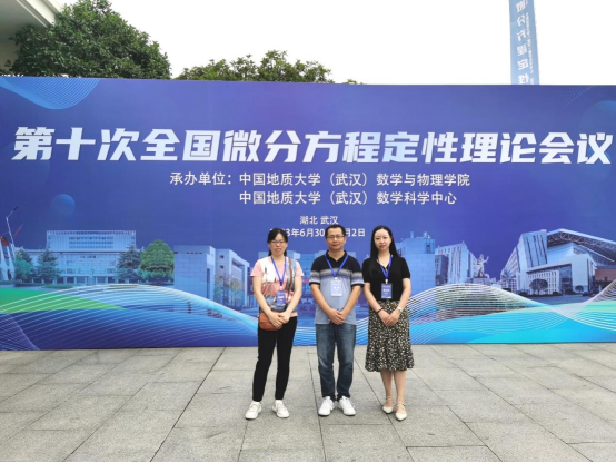 6月30日-7月2日,第十次全国微分方程定性理论会议在湖北武汉召开。本次会议由中国地质大学(武汉)数学与物理学院和数学科学中心承办,来自全国160多所高校共500余名专家学者和青年学生出席此次会议。beat365大数据与人工智能学院周恺、陆心怡和班爱玲三位教师应邀参会。