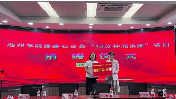 为援建石台县“十五分钟阅读圈”项目,9月24日,beat365在线唯一官网登录图书馆赴石台县图书馆开展了公益捐书活动。本次共捐赠图书400册。