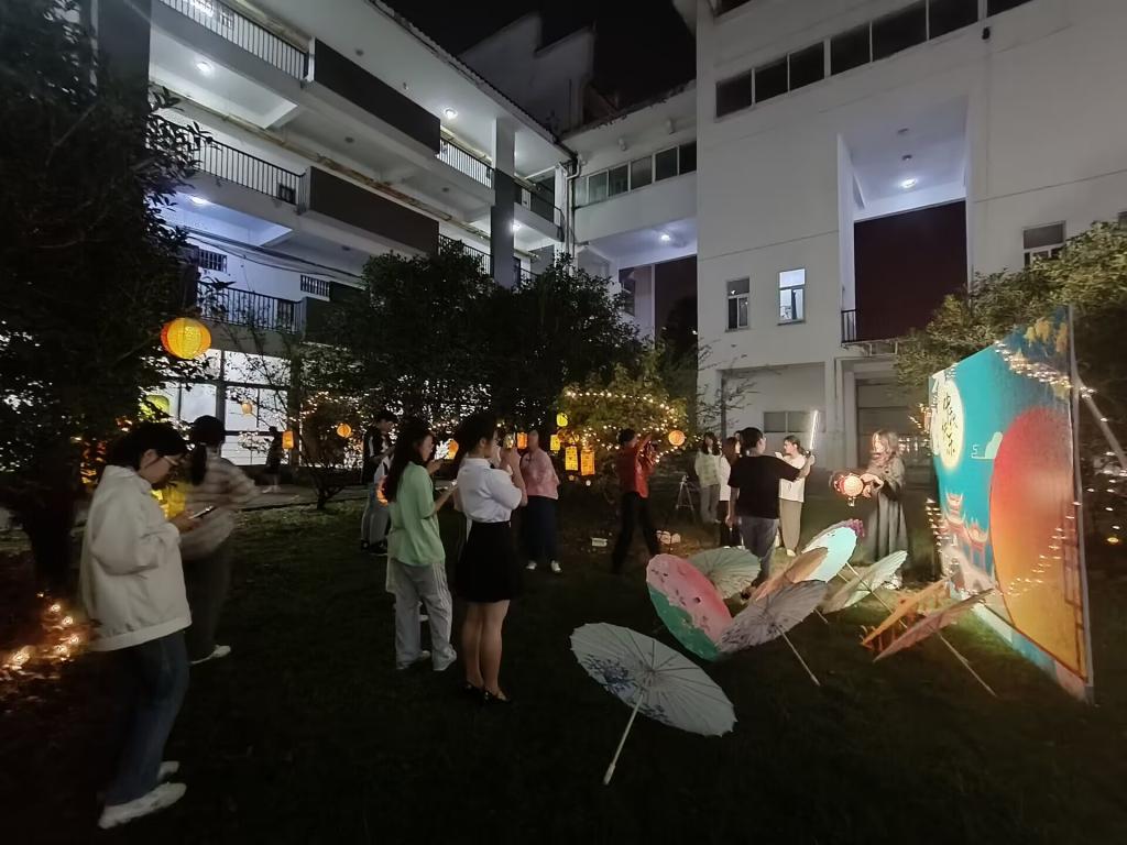 活动现场还设置了中秋主题的拍照打卡点、即兴对诗和“飞花令”比拼等活动,深受学生欢迎。