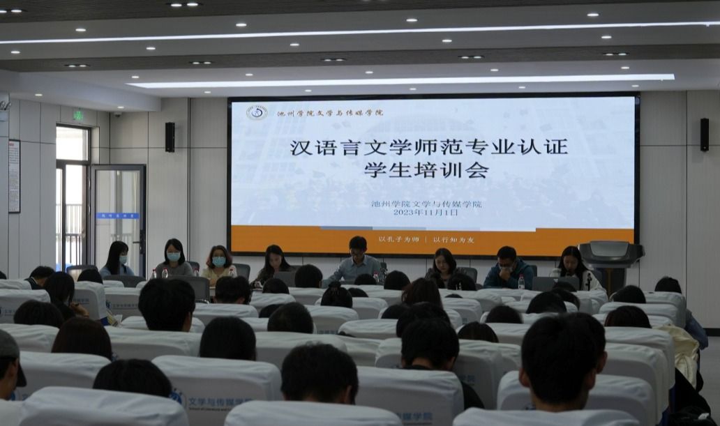 11月1日,文学与传媒学院在博物南三楼视听实训室召开师范类专业认证学生培训会。学院党委办、团委等办公室负责人,汉语言文学专业辅导员,院团学青及学生社团骨干,汉语言文学专业学生代表参加会议。会议由学院党委副书记刘德群主持。