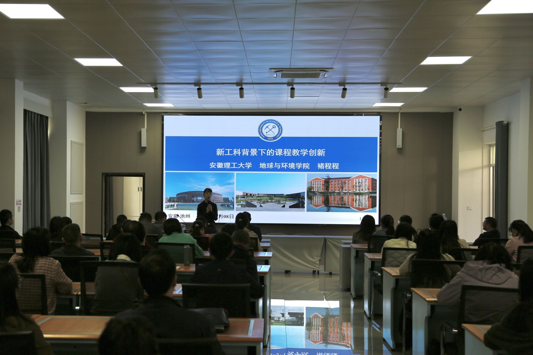 11月8日下午,教务处组织开展23-24学年教师教学能力提升系列讲座第三讲,邀请第三届全国高校教师教学创新大赛一等奖获得者、安徽理工大学褚程程博士做题为“新工科背景下的课程教学创新”的专题培训,各学院教学院长、教研室主任、拟参加第四届高校教师教学创新大赛的相关教师等100余人参加培训。教务处副处长周恺主持培训讲座。