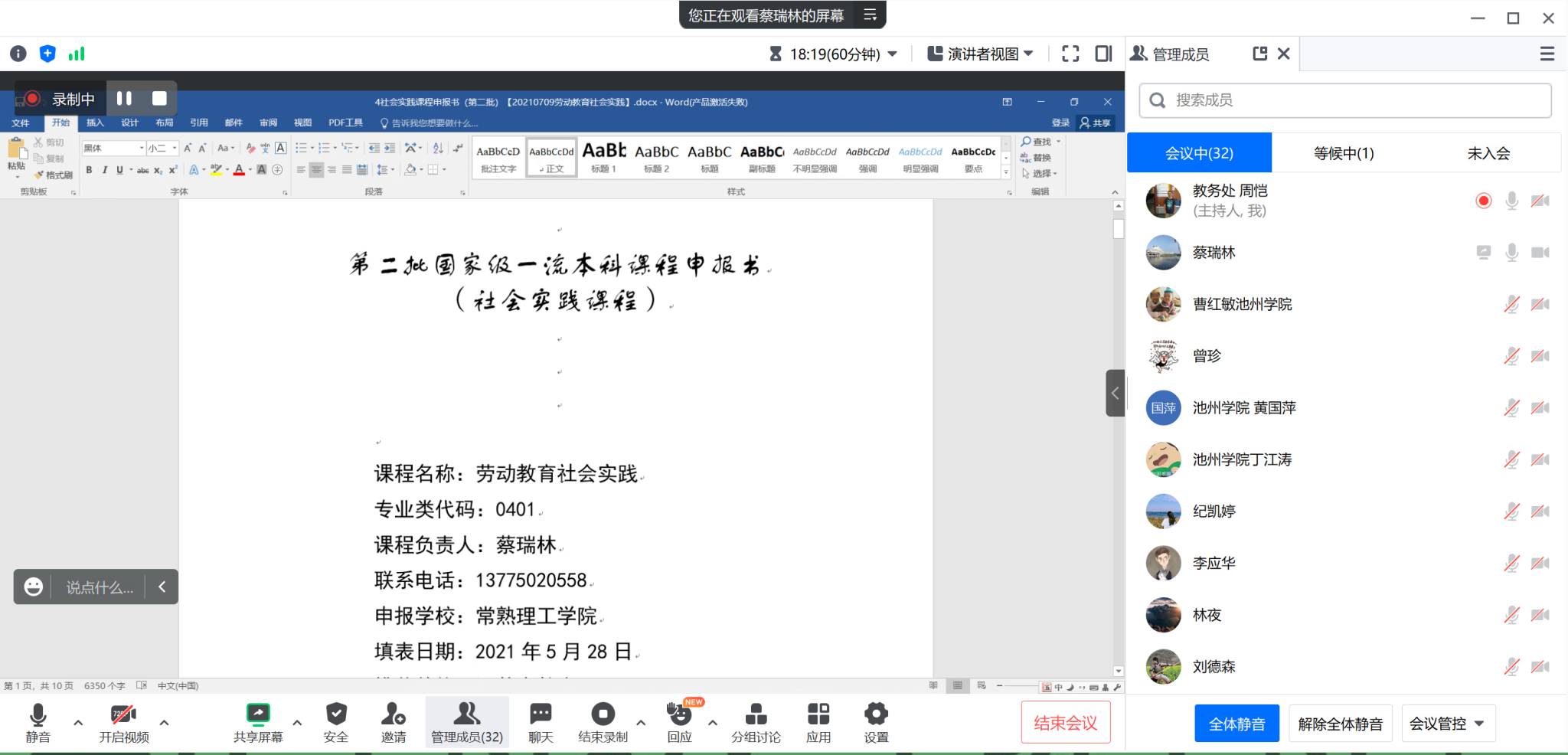 教务处组织召开第三轮国家级一流课程申报线上培训会