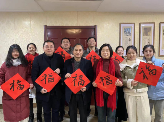 随着新春临近,党员同志们纷纷感受到节日的喜气和过年的祝福,洪为宝以书写“福”字为例,一边示范,一边给大家讲解毛笔的握笔方法和握笔姿势以及运笔与用墨的技巧。随后,党员同志们都快乐地书写新年“福”字,一个个形态各异的福字跃然纸上,祝福新的一年国家更加繁荣昌盛,人民生活美满,学校发展越来越好。