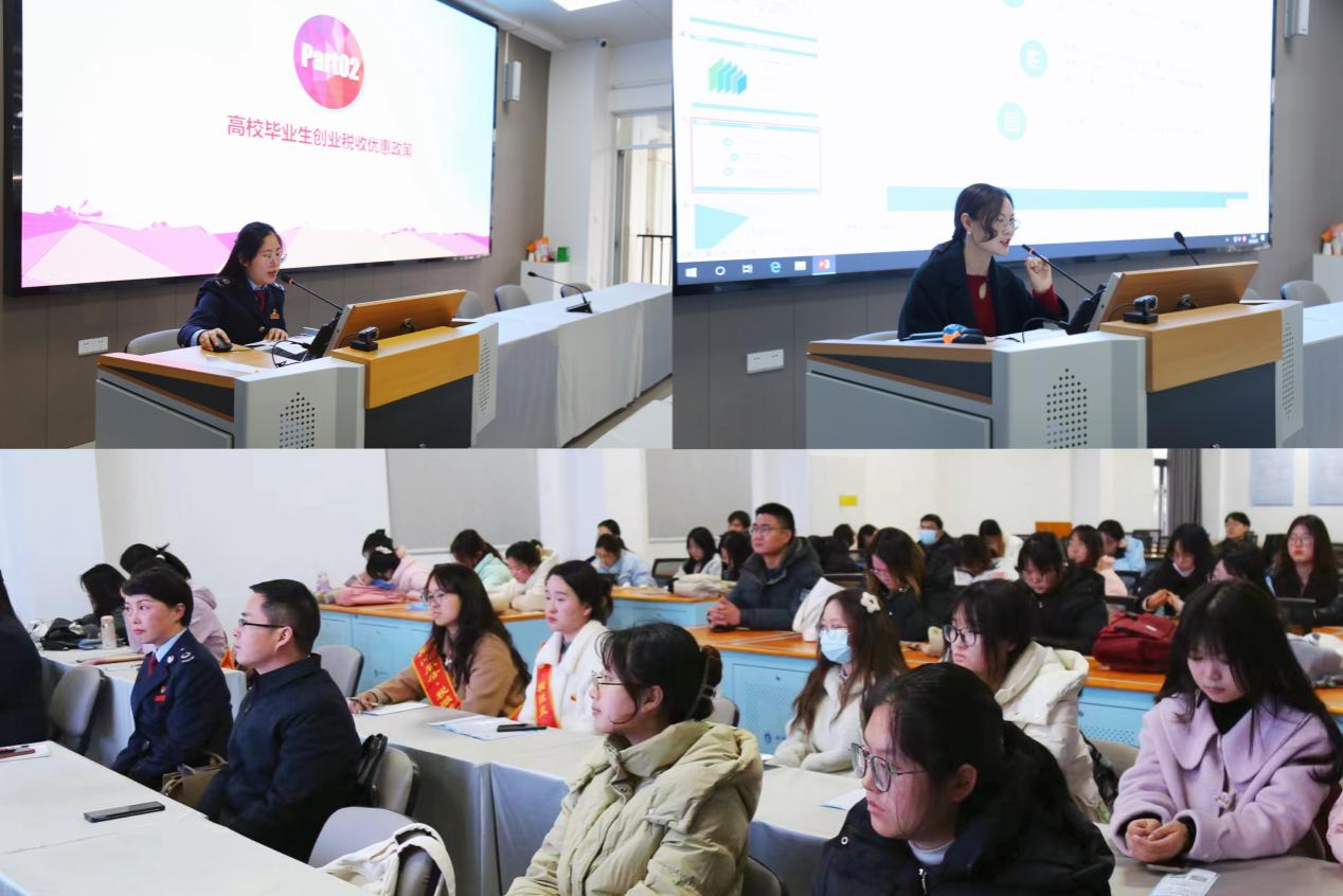 “同心服务.税微蓝”志愿者和市税务局的专家还走进教室,分别开展了《高校大学生在校取得收入及离校创业就业税收优惠政策解读》和《税惠润青送政策》系列课程。