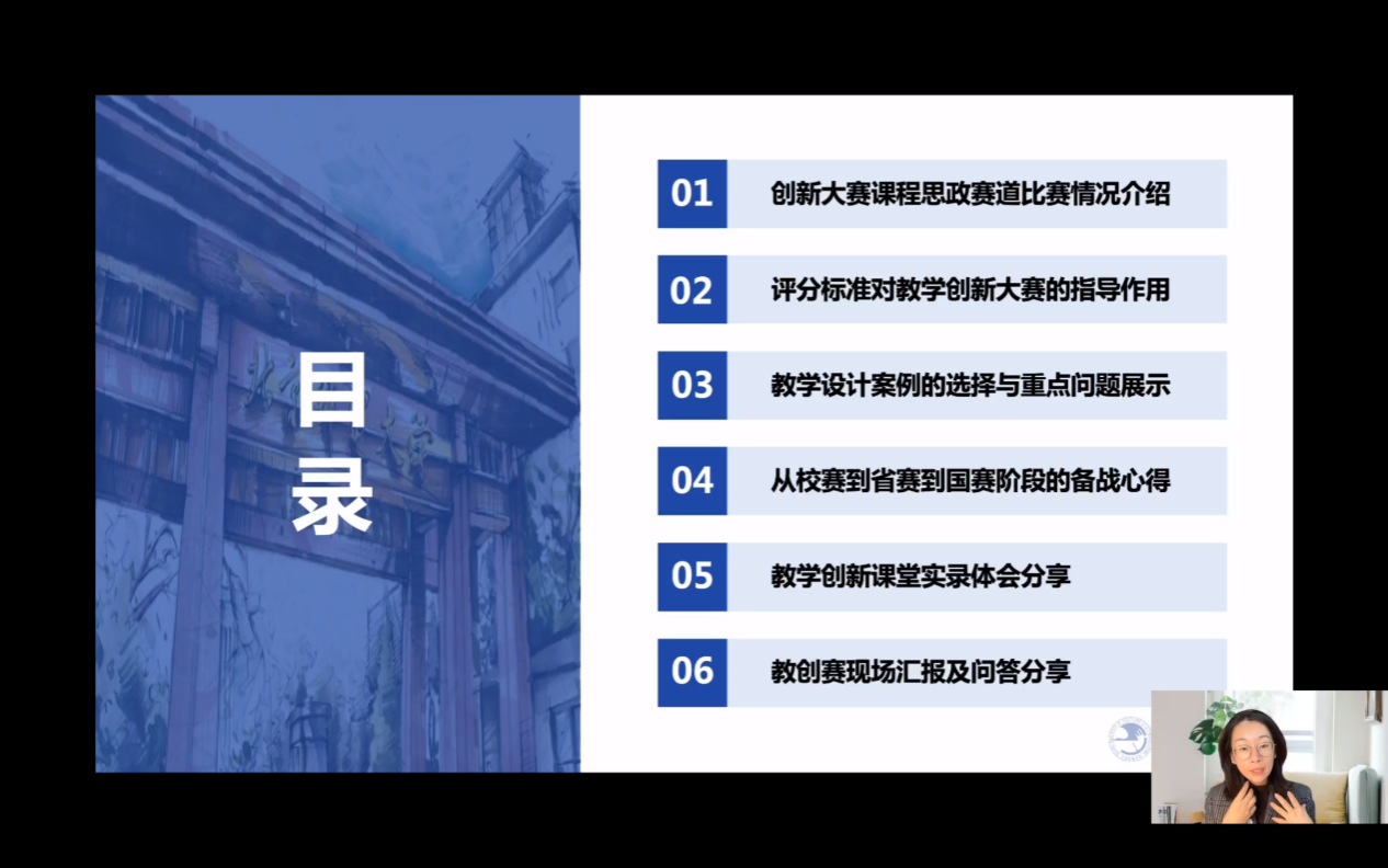 北京邮电大学的张钫炜老师、华中师范大学的杨九民老师、天津大学的宋春风老师、西北大学的温睿老师分别以“以赛教融合提升教学实效——教学创新大赛备赛要点与案例解析”“教学创新大赛标准解读与注意事项”“新工科背景下《大气污染控制》三经五纬立体式教学创新与实践”“教学创新的思考与教学创新大赛经验”为主题进行了详细讲解。