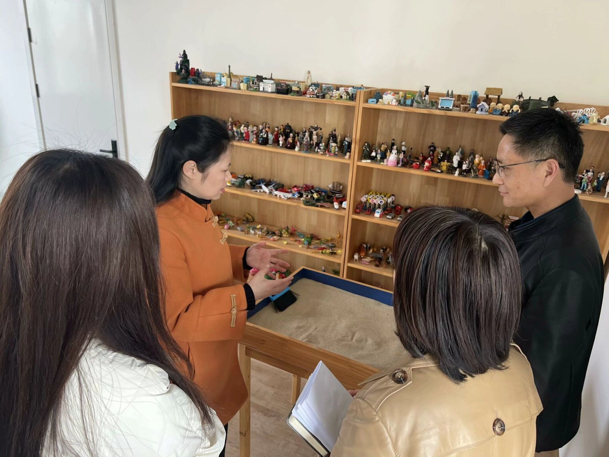 王娟对查明胜一行的到来表示热烈欢迎,介绍了学生处的工作开展情况和beat365心理健康教育工作的特色及成效。双方就如何推进池州市大中小学心理健康教育一体化工作展开了热烈讨论,在工作机制、工作任务、工作开展方式、保障机制等方面进行了深入交流。考察人员实地参观了心理健康教育中心。