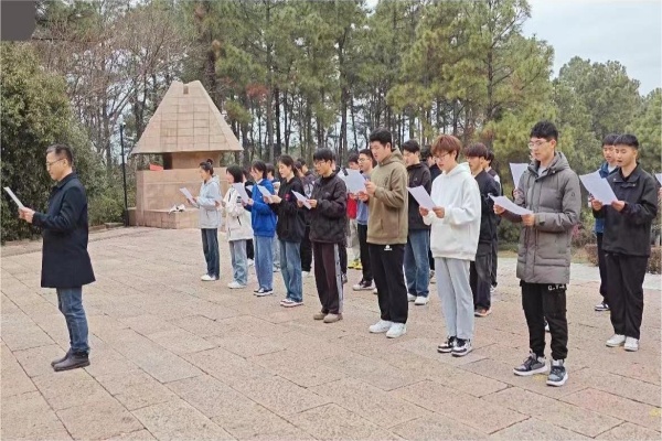 近日,机电工程学院传统文化试点班23光电对口班的同学们在班主任何竞旻老师带领下,来到池州市烈士陵园开展清明祭扫和诵读弟子规活动。