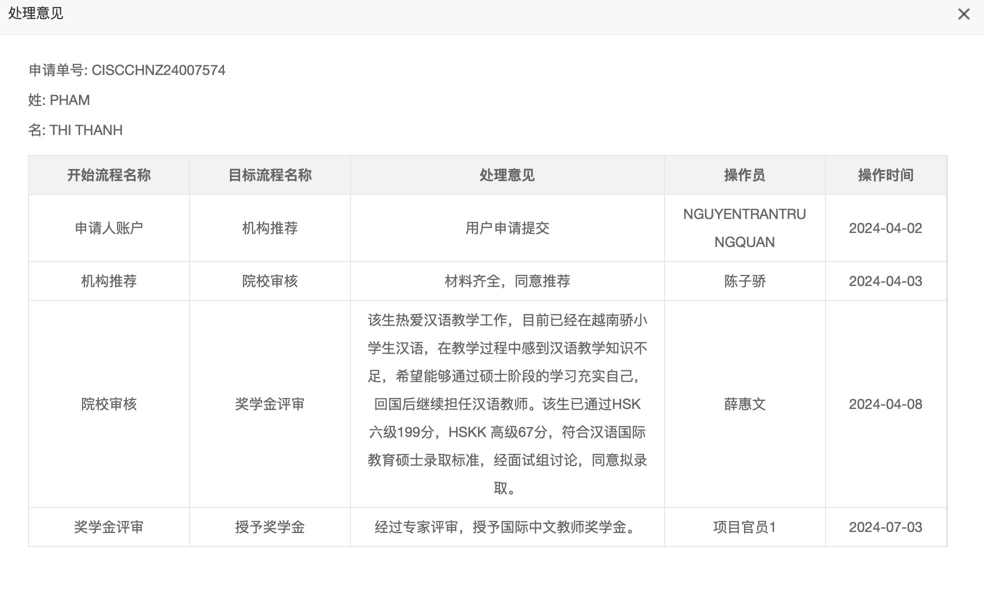 近日,beat365留学生PHAM THI THANH收到大连外国语大学招生办通知,录取PHAM THI THANH为大连外国语大学2024级汉语国际教育硕士生,并给予国际中文教师奖学金。