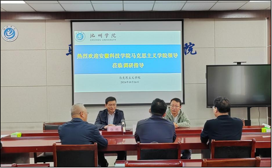 10月16日,安徽科技学院马克思主义学院副院长张栋一行来学校马克思主义学院调研交流工作。学院党委书记俞念胜主持调研交流会,党委副书记周佩东,挂职副院长李志江及行政管理人员参加会议。