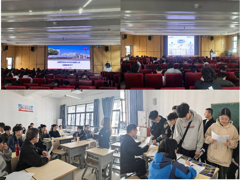 本次活动邀请了安徽宝镁轻合金有限公司、池州天赐高新材料有限公司、飞渡航天科技有限公司、安徽神剑新材料股份有限公司、池州普莱特科技有限公司5家企业进校园现场进行实习动员宣讲和就业招聘,学院2025届全体毕业生参加了活动。各企业多方面多元化向毕业生介绍当前行业和企业特点,分享各自企业的鲜明特色和未来发展方向,并就毕业生关心的晋升渠道和薪酬待遇等问题进行了解答。现场毕业生热情高涨、精神饱满,主动与用人单位进行交流,围绕公司的发展规划、工作环境、员工的发展方向等积极提问,现场气氛活跃。会后,企业用人单位在招聘室对学生开展面对面求职面试,进一步达成就业意向。学院安排辅导员在现场设置了简历指导、征兵宣传、政策解读等服务点,全方位、多角度地为毕业生提供细致入微的就业指导和服务,助力他们增强就业信心。