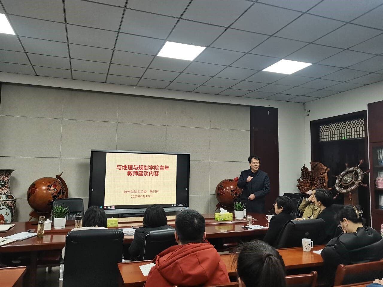 为凝聚发展共识,激发奋进力量,助力学院学科建设与“申硕迎评”工作提质增效,3月12日下午,地理与规划学院特邀校关工委副主任、原资源环境与旅游系(地理系)主任、资源环境与旅游发展研究中心主任、继续教育学院原院长朱同林莅临学院开展交流分享活动。全院教职工参加交流会,会议由学院党委书记冯淑慧主持。