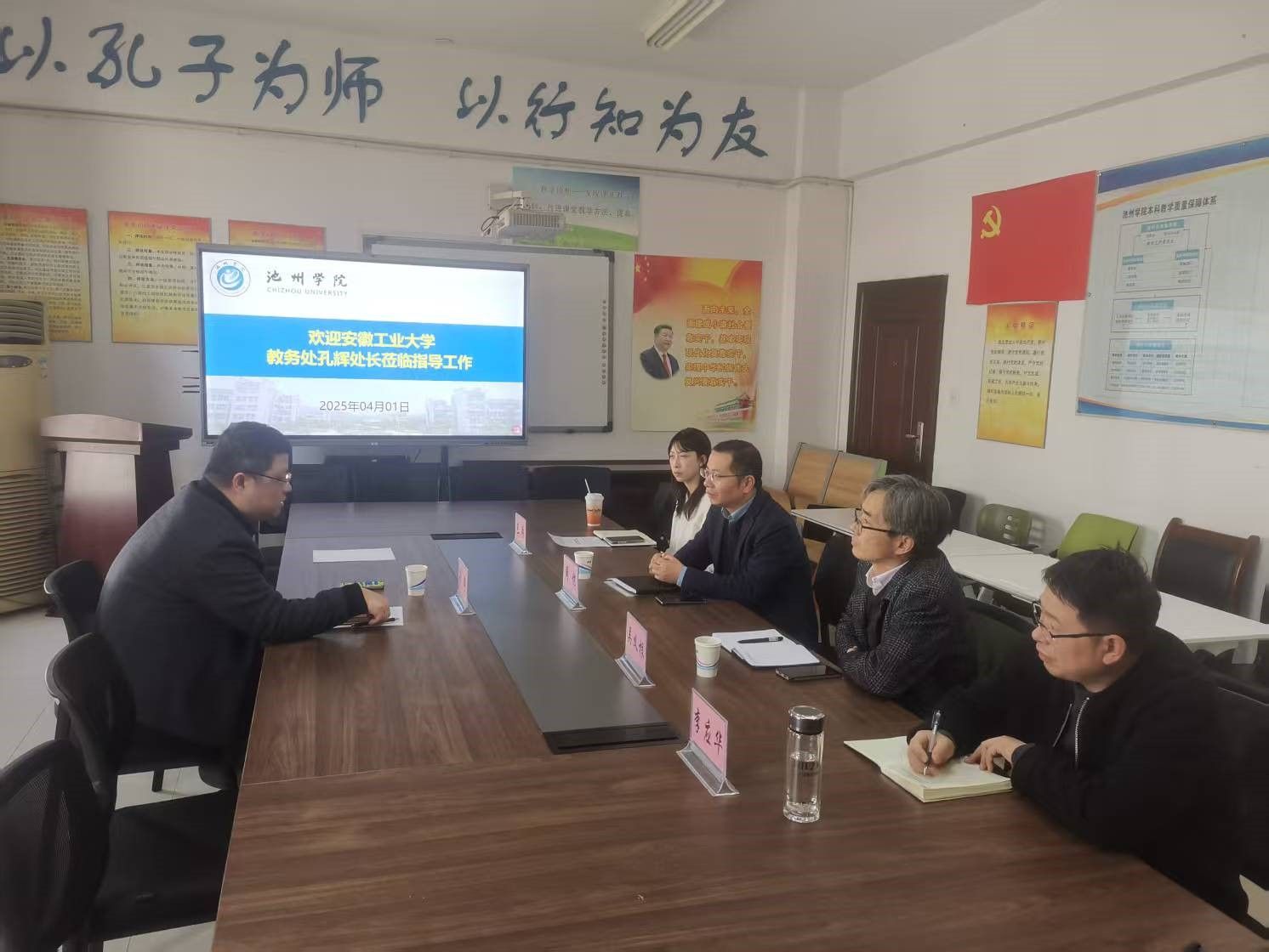 4月1日下午,安徽工业大学教务处处长孔辉来beat365教务处调研。教务处处长周恺、副处长李应华,商学院(法学院)副院长吴义根,教务处实践教学管理科负责人包卿参加调研座谈会,会议由周恺主持。