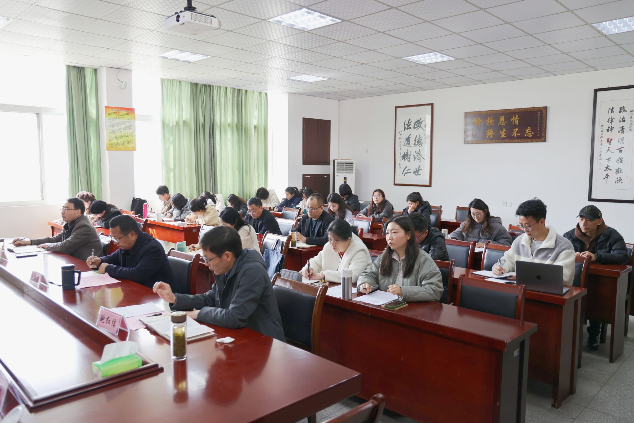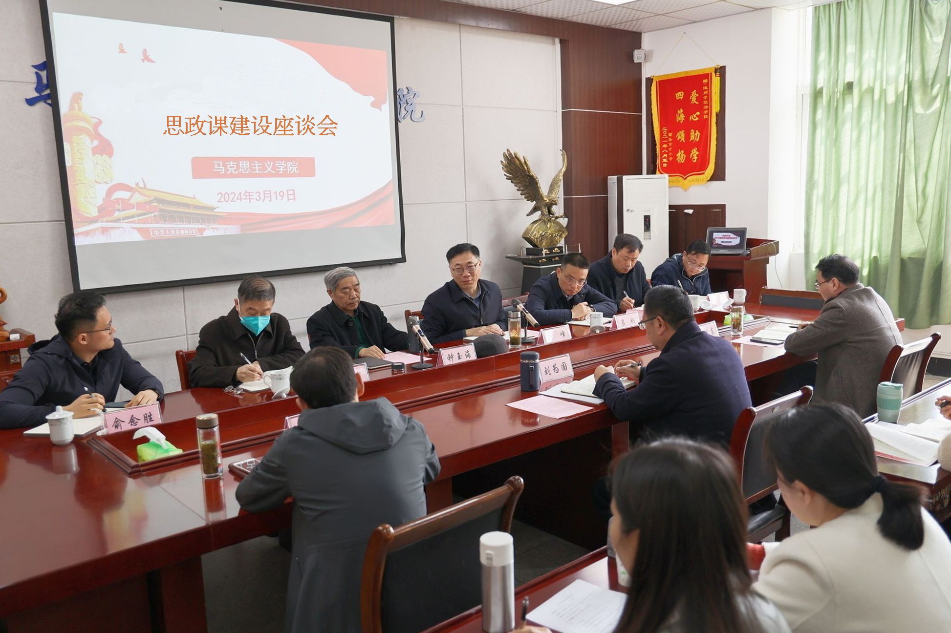马克思主义学院主要负责同志介绍了学院的发展历程、专业设置以及师资队伍的构成情况,汇报了思政课程改革创新以及大中小学思政课一体化工作推进情况。与会人员围绕马克思主义学院建设和思政课改革创新等进行了深入研讨。