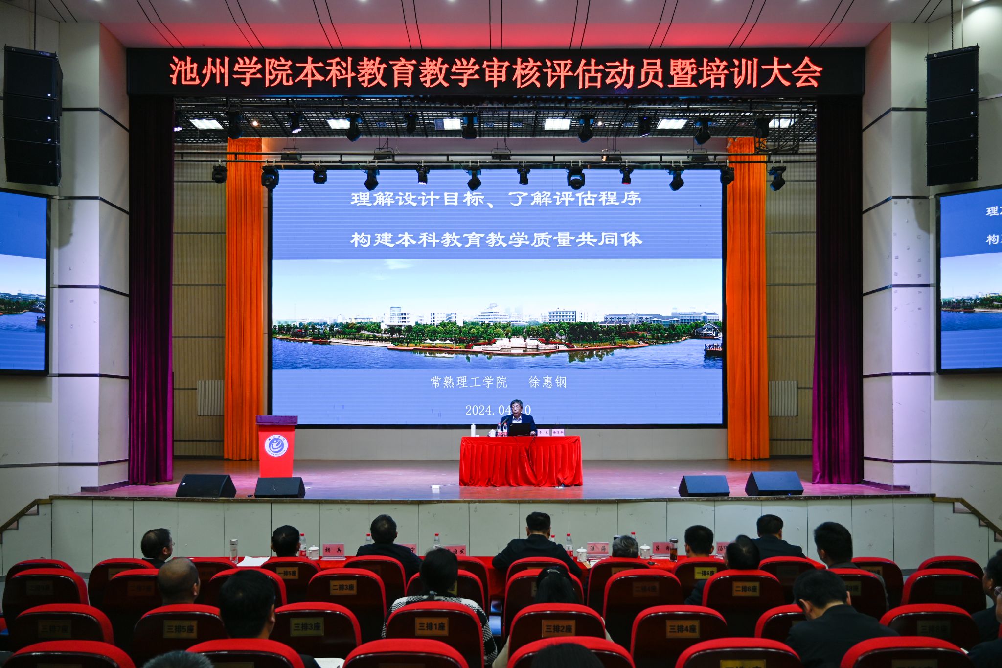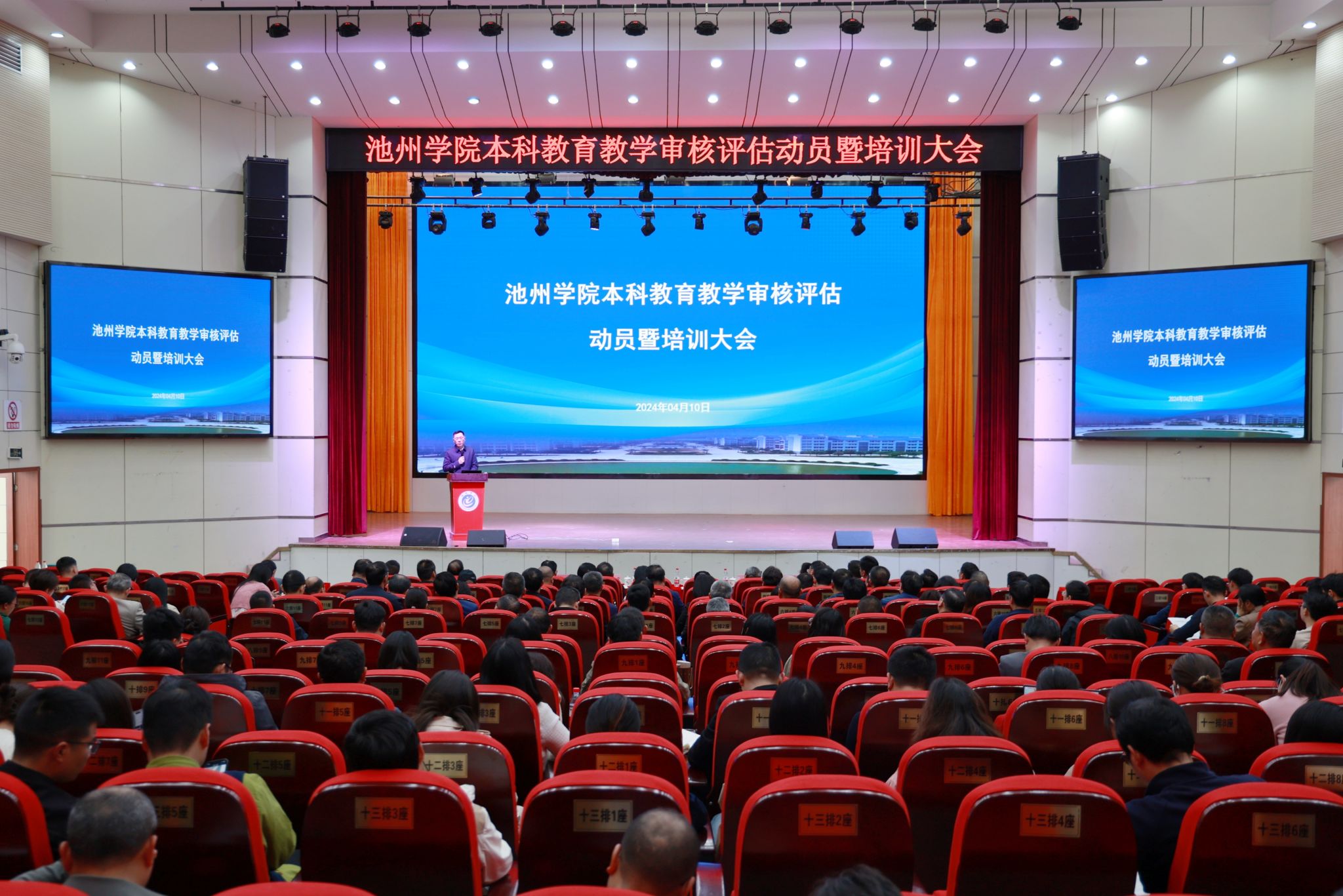 为进一步落实立德树人根本任务,巩固人才培养中心地位,全力做好本科教育教学审核评估评建改工作,4月10日下午,学校在博古楼大礼堂召开本科教育教学审核评估动员暨培训大会,就新一轮本科教育教学审核评估工作进行全面动员部署。校党委书记王峰作动员讲话。校领导崔国发、汪海、阳光宁、吕刚出席会议。