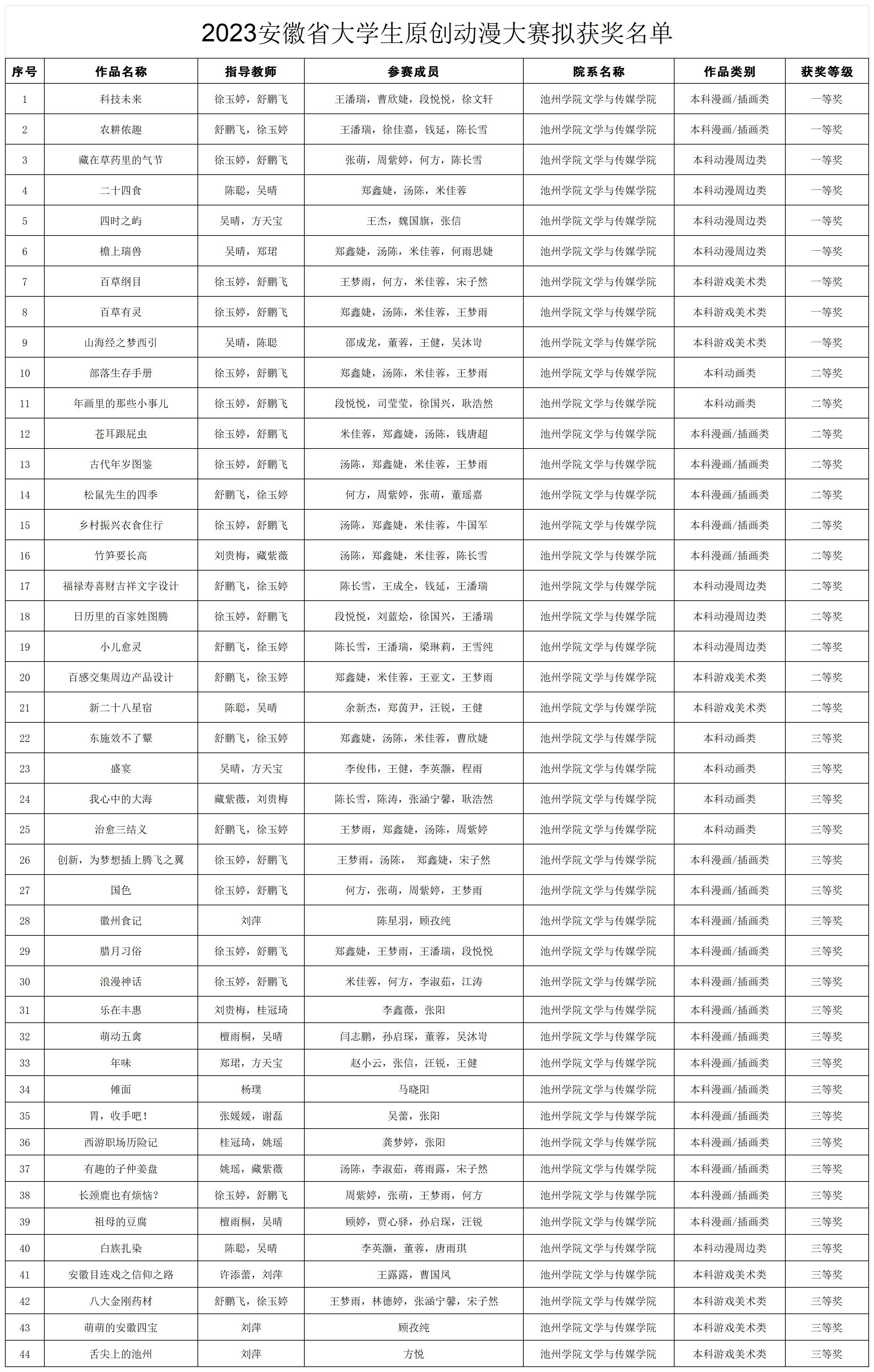 4月18日,2023年安徽省大学生原创动漫大赛评选揭晓。beat365文学与传媒学院报送的参赛作品共获一等奖9项、二等奖12项、三等奖23项,徐玉婷、吴晴、陈聪、舒鹏飞四位老师荣获优秀指导老师奖,学校被授予优秀组织单位奖。