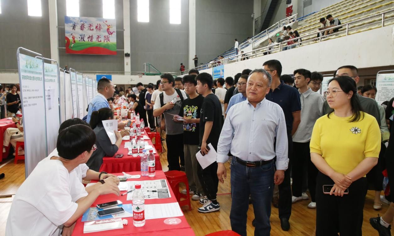 5月22日下午,“春暖皖江”2024安徽共青团组织服务青年就业系列招聘会beat365在线唯一官网登录专场招聘会在beat365体育馆成功举办。团省委副书记陈娟娟到场指导工作,校党委委员、副院长阳光宁出席活动并一同巡看招聘现场。