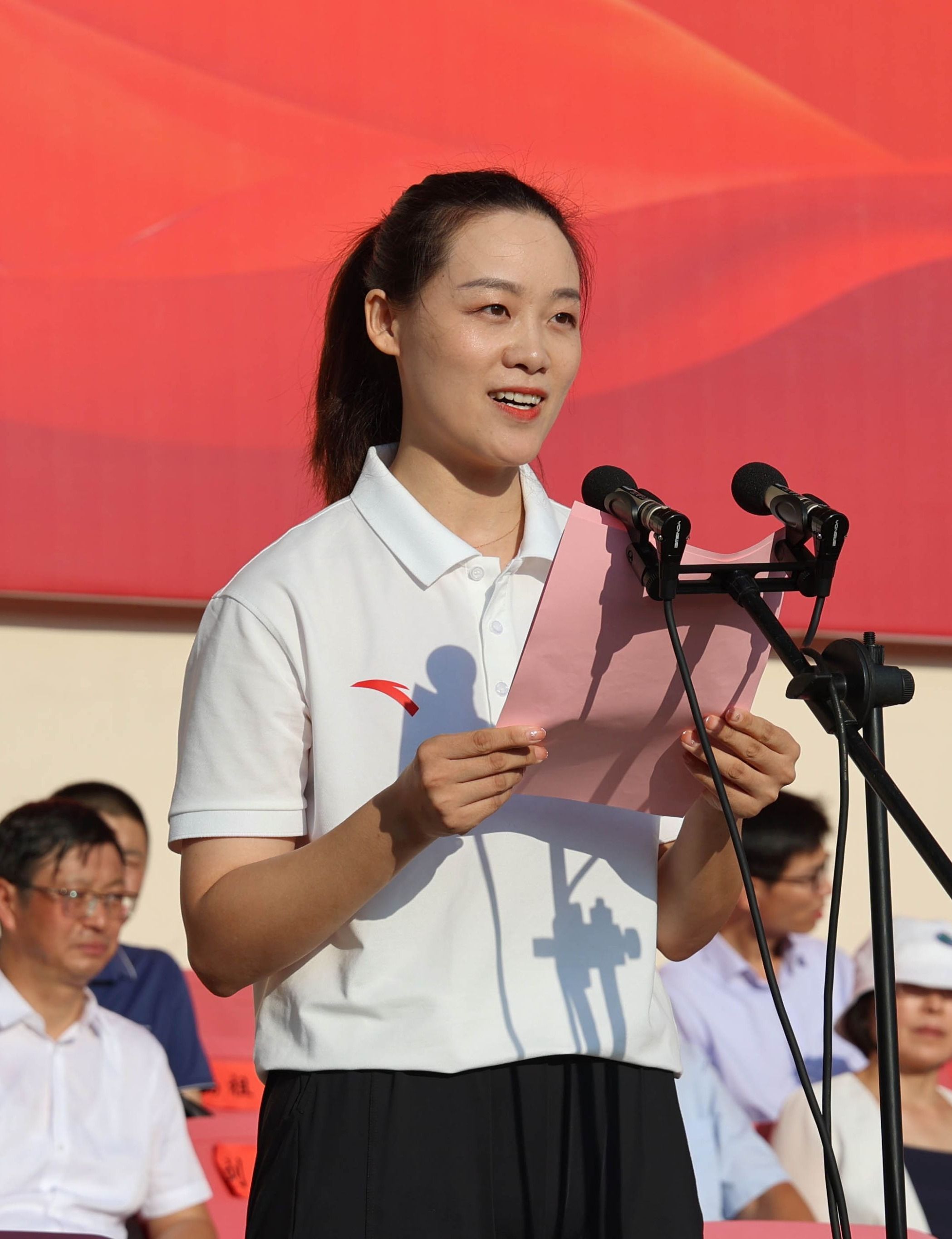 承训部队教官代表李佳新同志和教师代表王小双老师分别围绕军事训练和大学生活作了情真意切的发言。