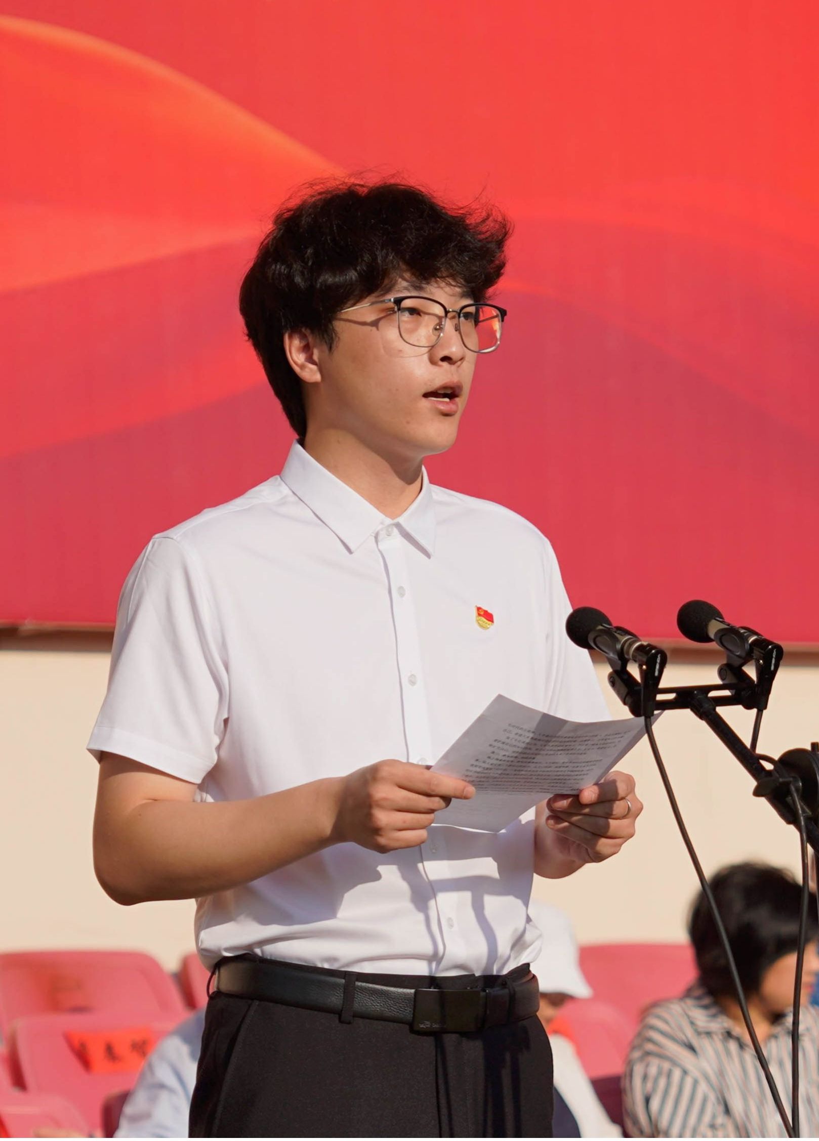 老生代表艺术与教育学院22级音乐学程学同学和新生代表旅游与历史文化学院24级酒店管理专业梁双同学分别作了精彩发言。