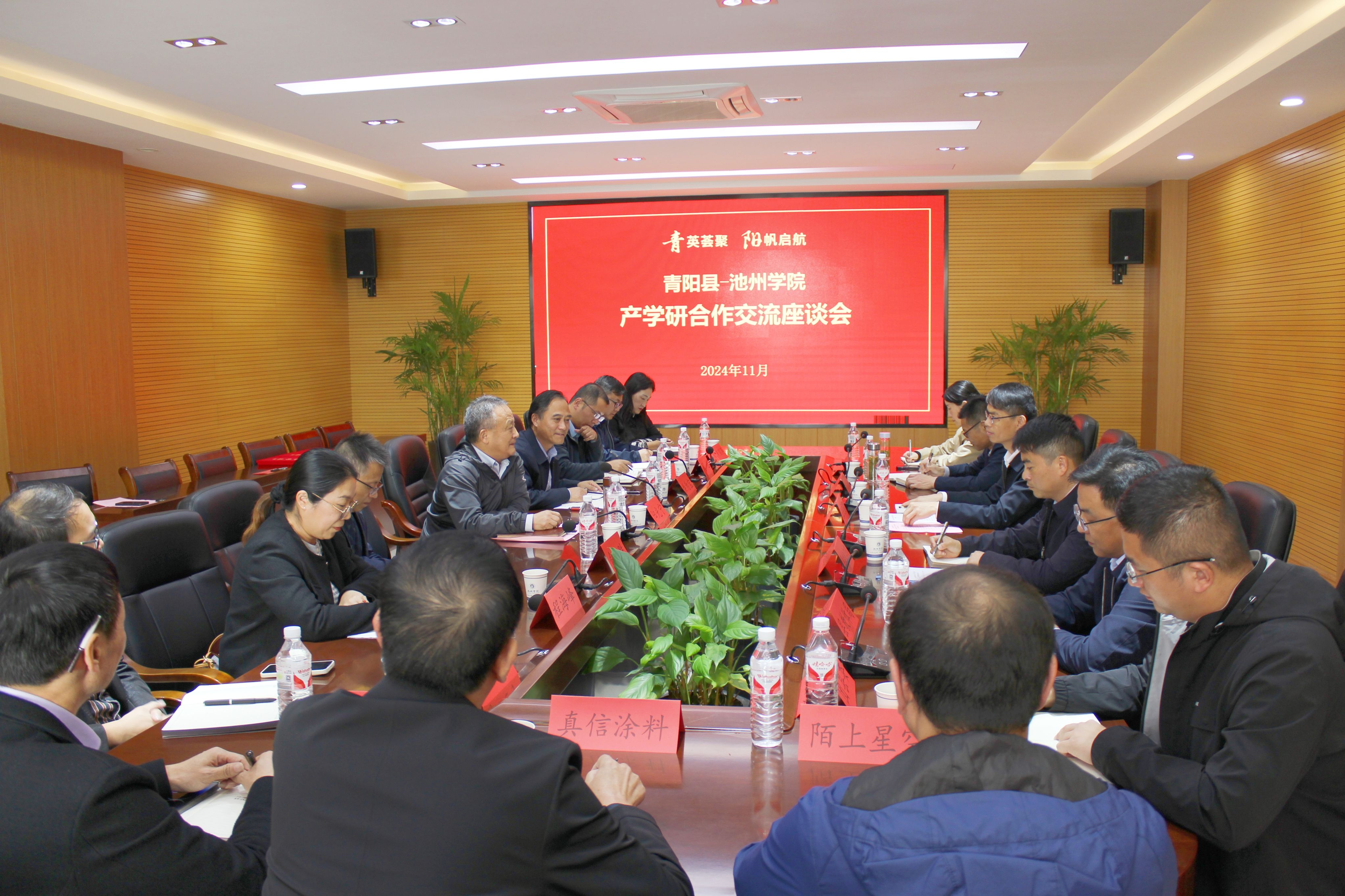座谈会上,阳光宁对王明星一行的到来表示热烈欢迎,并详细介绍了学校的发展现状、教育改革、学科建设及人才培养情况。他表示,近年来,学校积极融入地方经济建设,致力于培养适应地方经济社会发展需要的应用型人才,在教育教学、科研创新和服务区域经济建设等方面的特色和优势,为校地企合作提供了坚实基础。希望与青阳县进一步加深合作,携手共推区域经济发展,更好彰显学校服务社会功能。