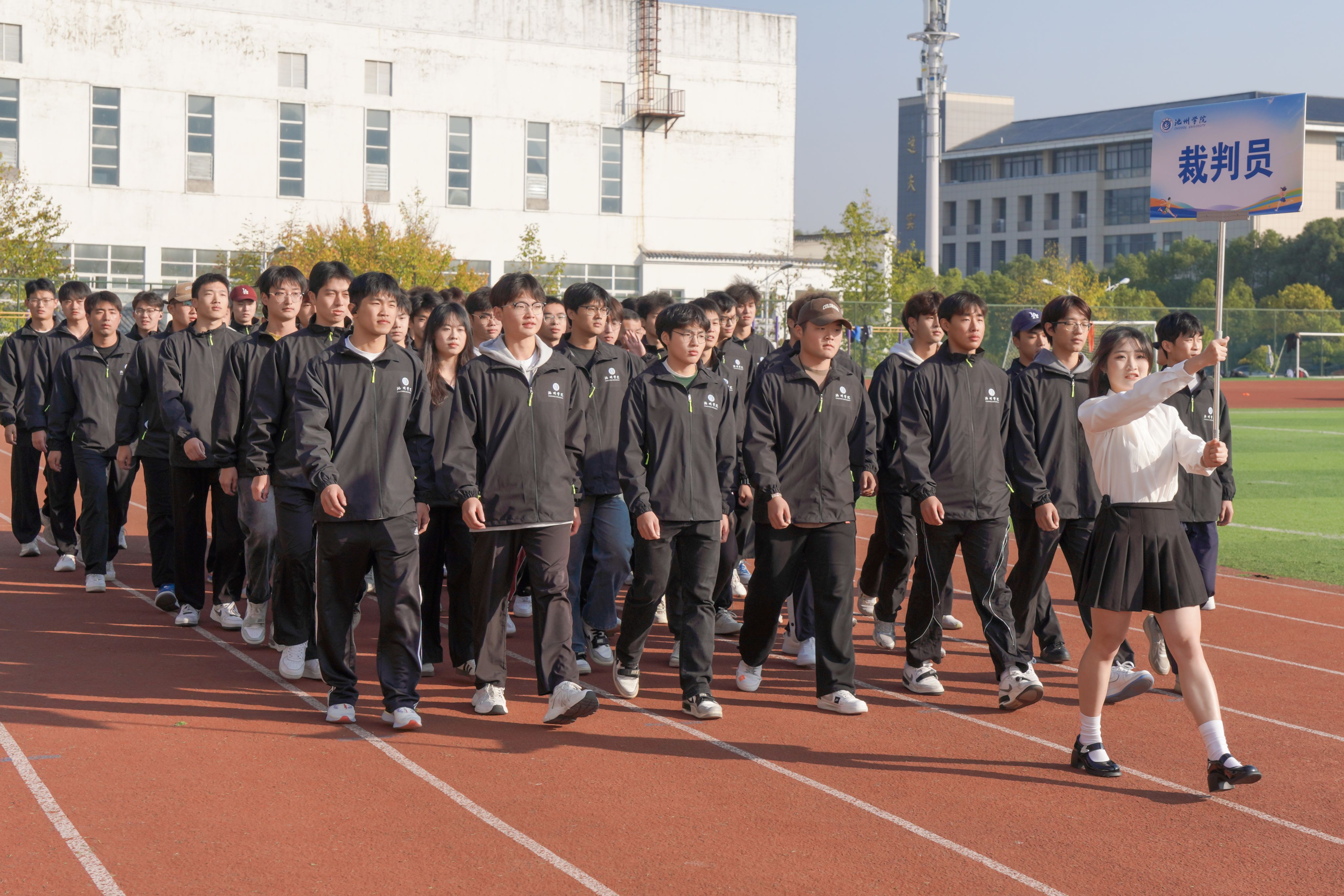 各方阵依次通过主席台,接受主席台检阅,彰显了广大师生昂扬向上的精神风貌。