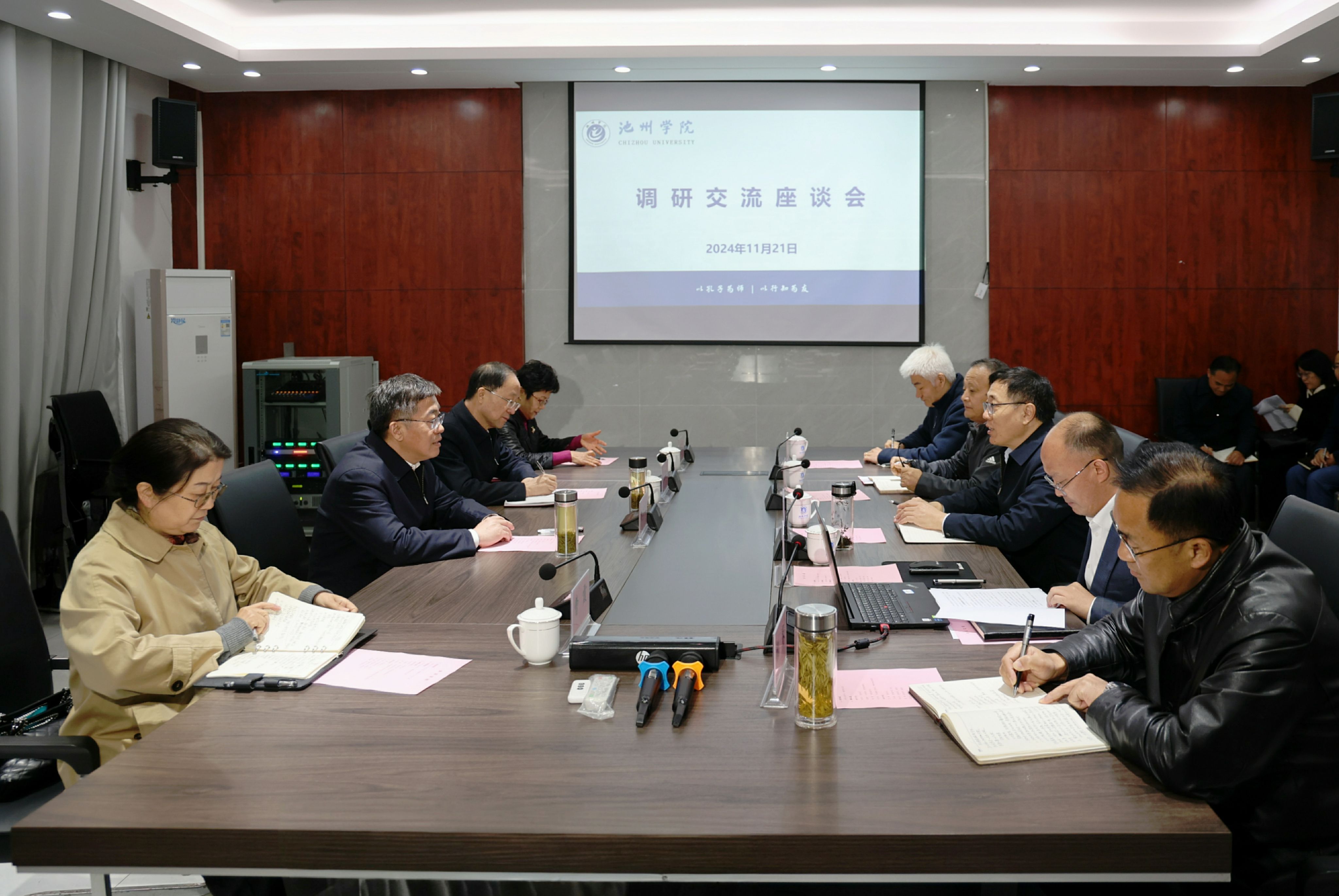11月21日,市委书记朱浩东一行来校调研。党委书记王峰,党委副书记、院长王先柱陪同调研。市委常委、统战部部长、市政协党组副书记史孺牛,市政府副市长曹霞,党委委员、副院长阳光宁、张赛,学术副院长吴征威参加活动。