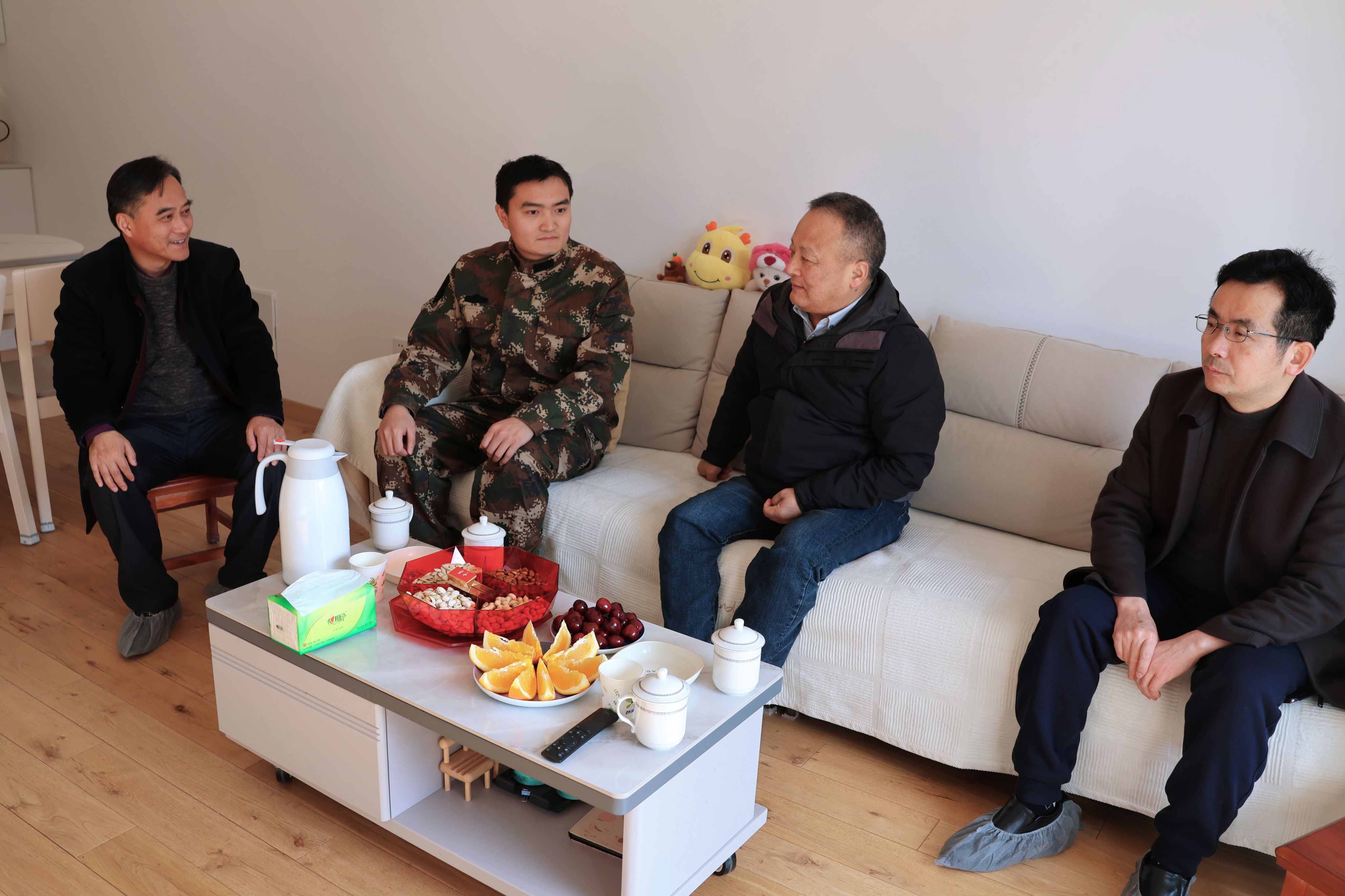 在学生代表操家成同学家中,阳光宁亲切地询问他的学业情况,充满了期许与鼓励,赞扬操家成同学退伍不褪色,为全校同学树立了榜样,希望他不忘初心使命,带动更多同学积极进取。