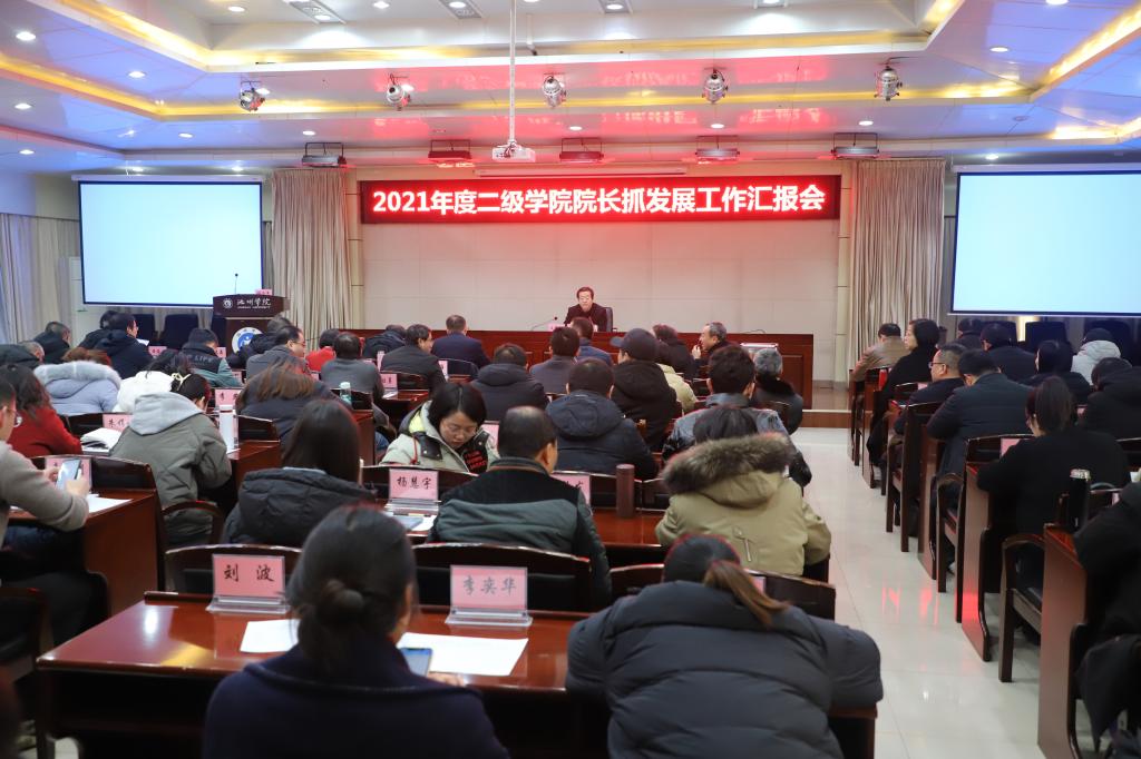 下午,二级学院院长汇报依法治校、教学管理与人才培养、人才工作与教师队伍建设、学生管理与服务、科学研究、社会服务、文化传承、国际交流与合作等方面的工作成绩与特色。
