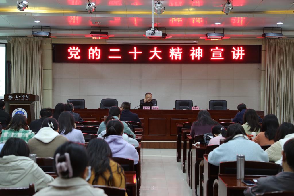 11月23日下午,院党委委员、副院长阳光宁在行政南二楼报告厅为外国语学院、商学院全体教师宣讲党的二十大精神。