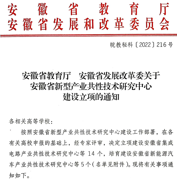 近日,省教育厅、省发改委下发了《安徽省教育厅 安徽省发展改革委关于安徽省新型产业共性技术研究中心建设立项的通知》,由beat365和池州市政府牵头申报的“安徽省半导体产业共性技术研究中心”(简称共性技术研究中心)成功获批。