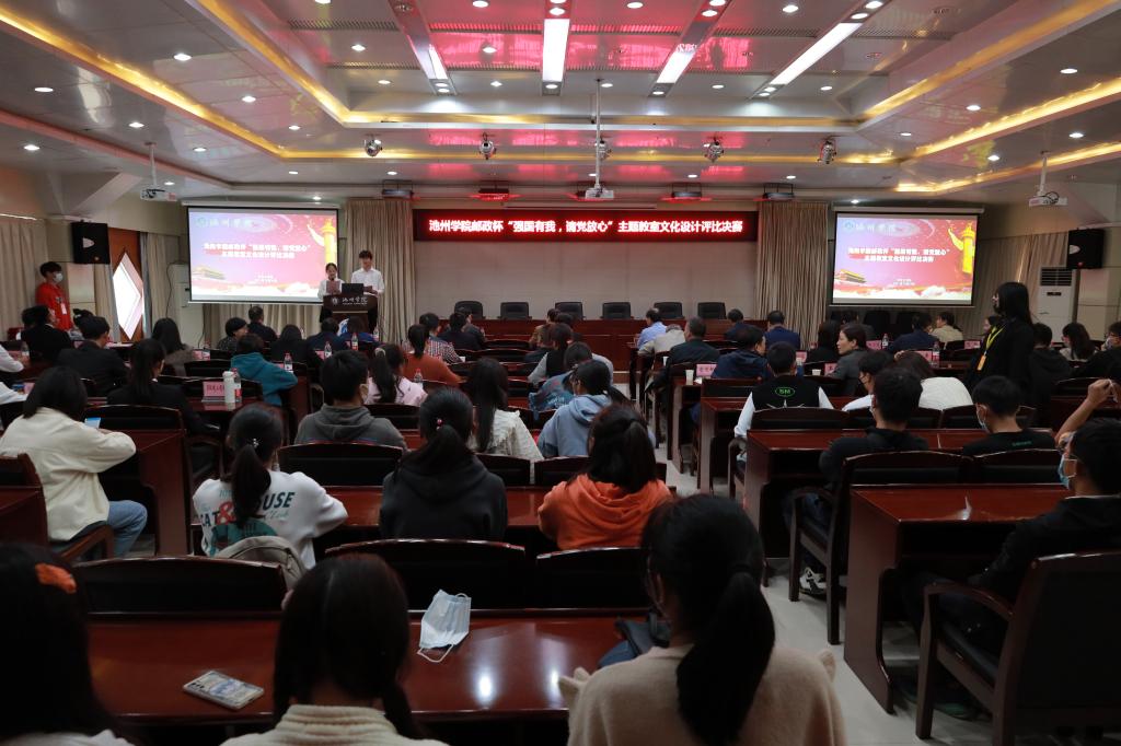 本次比赛要求设计内容凸现“强国有我,请党放心‛的爱国主义主题,包括党史学习教育,社会主义核心价值观、中国梦、志愿服务精神,以及爱师爱校、校园文明行为规范等内容。决赛采用PPT形式展示解说设计理念,展示班级风采,介绍班级全体成员齐心协力开展班级文化的设计过程。现场气氛热烈,各参赛选手紧扣主题,表达对党对祖国最朴素、最真挚的情感。
