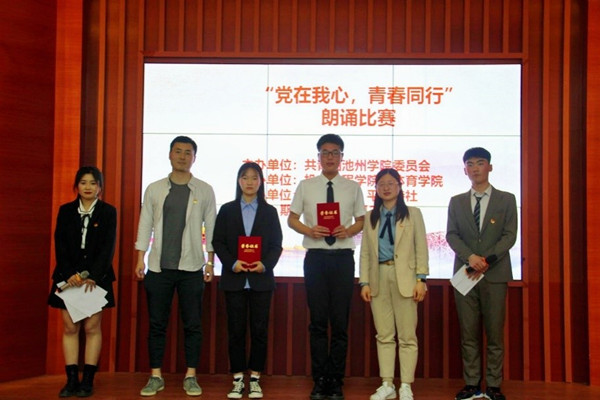 学生们用充沛的感情朗诵着一首首诗歌,充分表达了对党和祖国的热爱。经过激烈的角逐,最终洪臻、杨晓珂的作品《中华颂》获得一等奖;陶杰的作品《党在我心,青春同行》、王西亚的作品《祖国啊,我亲爱的祖国》获得二等奖;张瑞的作品《光的赞歌》、李培茹、徐甲秀的作品《世界,请听中国朗诵》、张婉婷、李雨琪的作品《青春心向党》获得三等奖;张晓艾等七组作品获得优秀奖。
