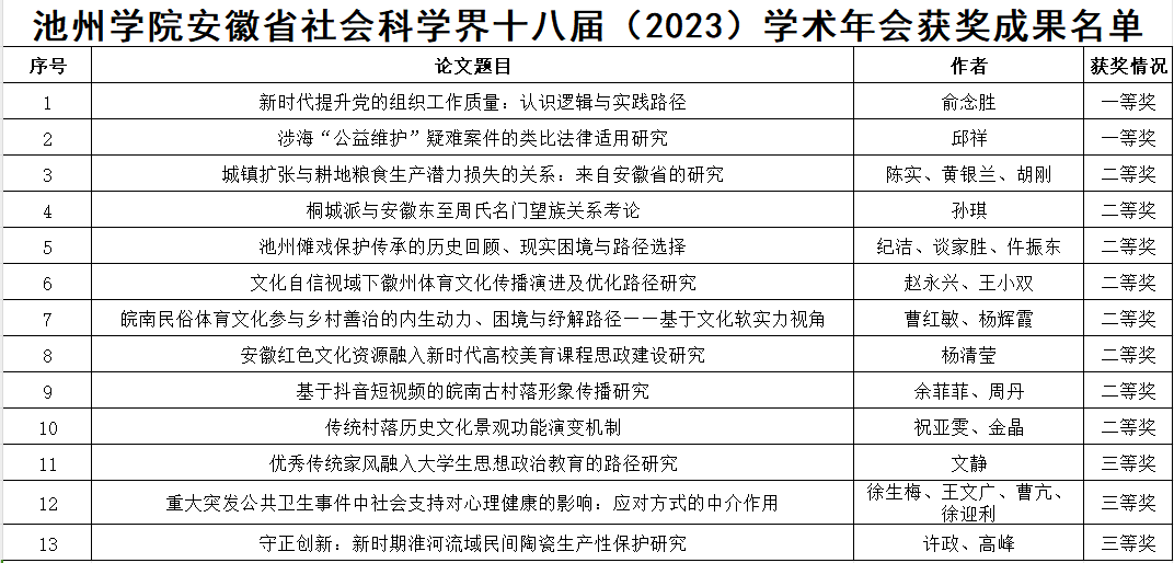 安徽省社科界学术年会是全省人文社会科学多学科、高层次、权威性、品牌化的学术交流平台,是全省社会科学界展示最新学术成果、推动学科学术交流、培育学界学术新人、促进学科学术体系建设的标志性盛会。年会论文一、二等奖被省教育厅列为我省高校科研奖励项目,并列入高校教师专业技术资格科研奖励分类表,奖励等级为三类。