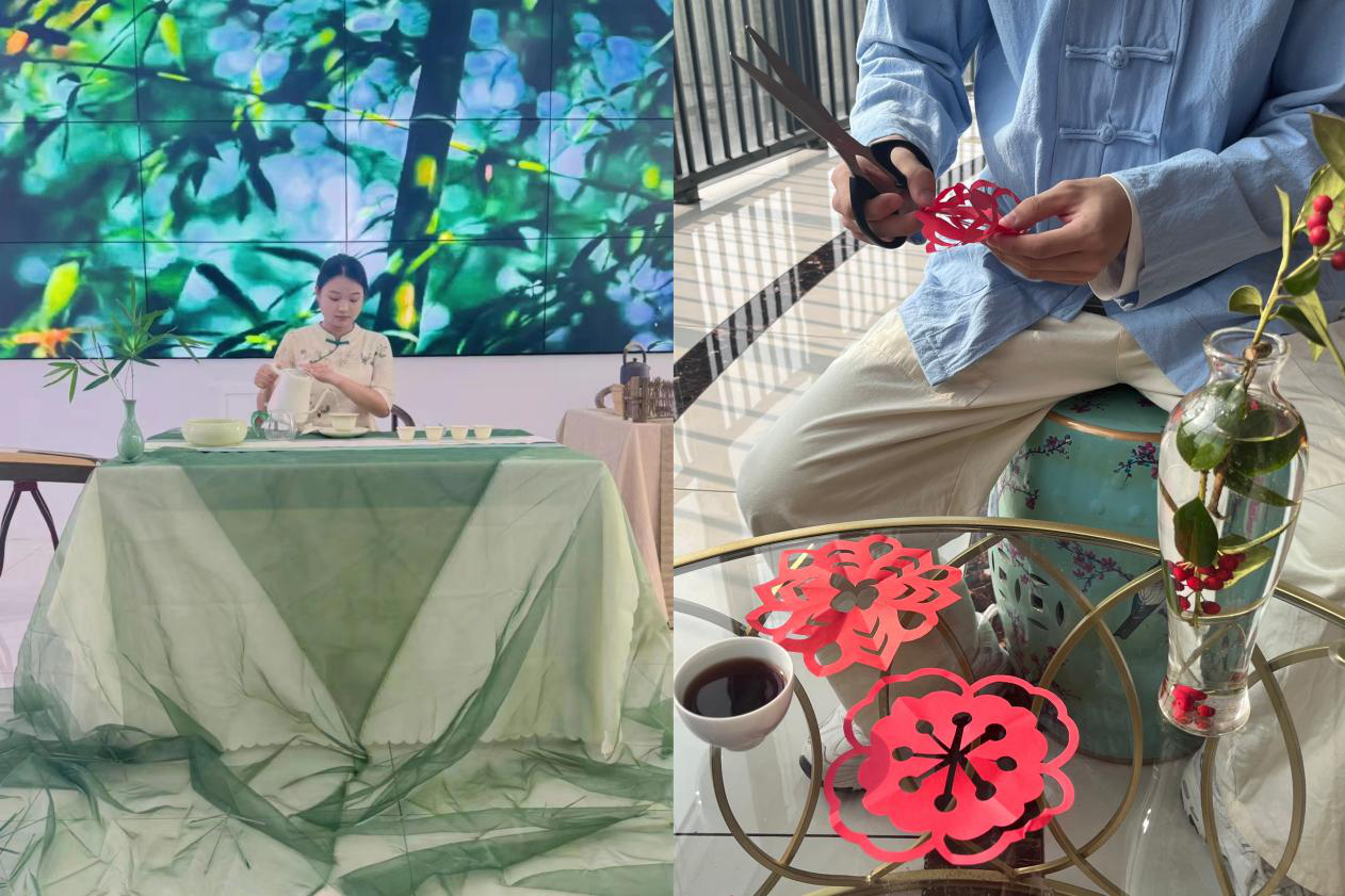 茶艺社在大学生活动中心开展“品茗茶·剪窗花”特色活动,社员身着茶服,依次展示沏茶、赏茶、闻茶、奉茶与品茶的技艺,制作特色茶果,讲解茶艺中的美学观点与人文精神,展现茶文化独特的灵性与美感。在幽幽的茶香中,老师同学轻松围坐,将对祖国的祝福和对亲友的祝愿剪成形态各异的窗花作品,感受民间艺术的魅力。