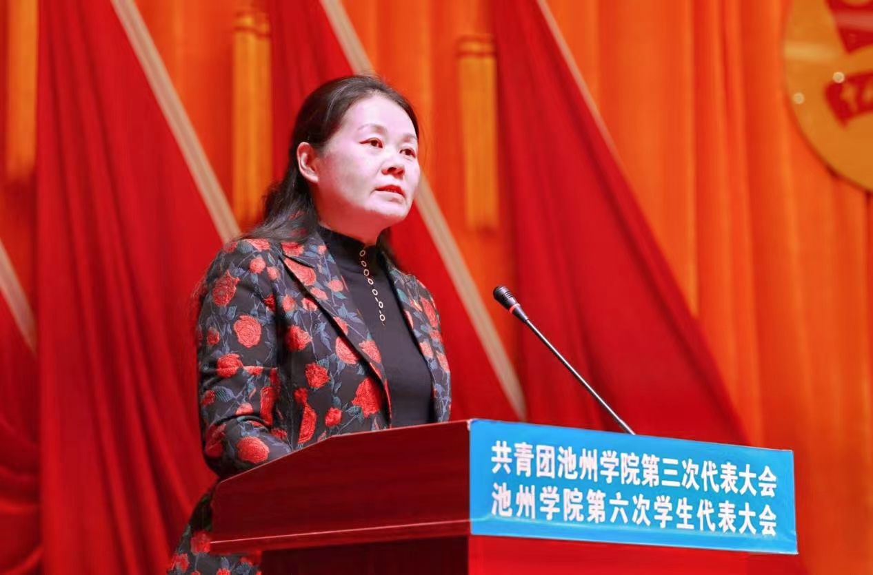 郑兰荣代表学校向大会的胜利召开表示热烈祝贺,向全校团员青年和广大同学致以亲切的问候,充分肯定了近年来各级团学组织在服务学校人才培养和特色鲜明的地方应用型高水平大学建设中发挥的积极作用,并向广大青年学生提出三点希望:一要坚定信念、志存高远。要坚定不移听党话、感党恩、跟党走,坚定拥护“两个确立”,忠诚践行“两个维护”,珍惜韶华、脚踏实地、奋发有为,在强国建设、民族复兴的伟大实践中放飞青春梦想、书写人生华章。二要立德修身、锤炼品格。要明大德、守公德、严私德,心怀“国之大者”,努力践行社会主义核心价值观,严以修身,正心明道,做一个心灵纯洁、人格健全、品德高尚的人。三要砥砺奋斗、勇于担当。要勇于做走在时代前列的奋进者、开拓者、奉献者,树立“永久奋斗”的理念,刻苦学习、积极实践、勇于创新,积极参与学科竞赛、志愿服务、科技创新、乡村振兴、社会实践,求得真学问,练就真本领,争做时代先锋,担当时代使命。
