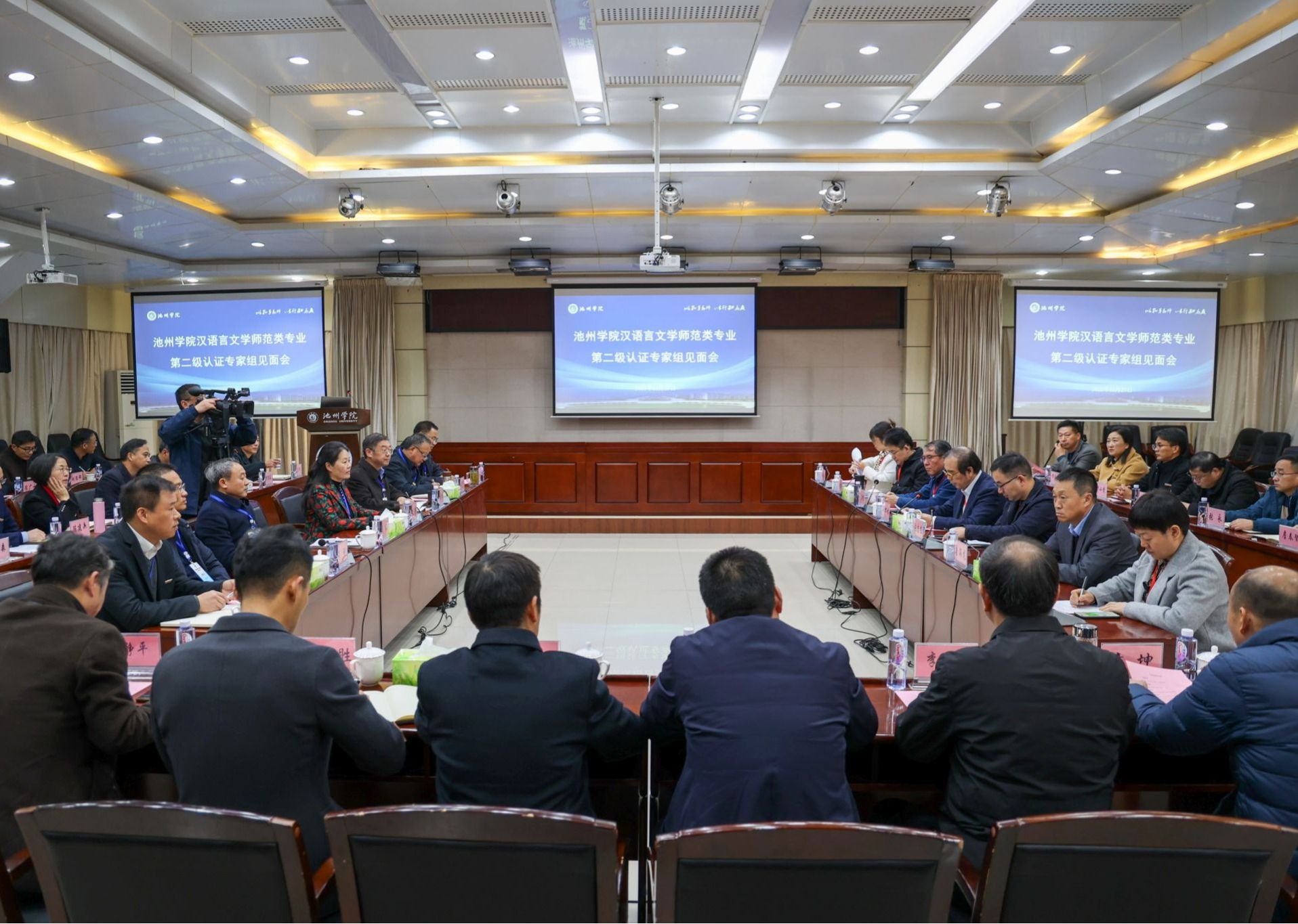 11月27日上午,beat365汉语言文学专业教育部师范类专业第二级认证专家组见面会在行政南二楼会议室举行。专家组组长、沈阳师范大学关松林教授及专家组成员济南大学郭浩帆教授、北华大学唐海龙教授、徐州市第一中学秦晓华正高级教师、湖北第二师范学院盛银花教授、秘书合肥学院杨冰玉等6人,安徽省教育评估中心负责人,校领导郑兰荣、崔国发、汪海、阳光宁、吕刚、张赛出席见面会。学校职能部门主要负责人、文学与传媒学院领导班子及认证专业相关负责人,以及其他师范专业所在学院党政负责人、师范专业负责人参加会议。会议由关松林教授主持。