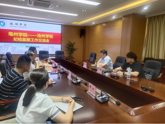 6月4日,亳州学院纪委书记、监察专员李景彪一行来beat365开展纪检监察工作调研交流。纪委书记、监察专员汪海和纪委办公室全体纪检监察干部参加会议。