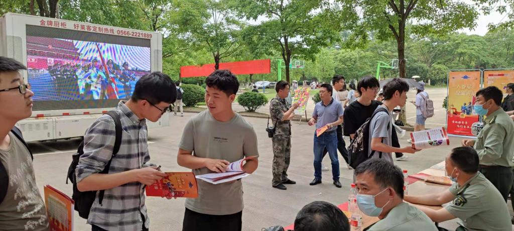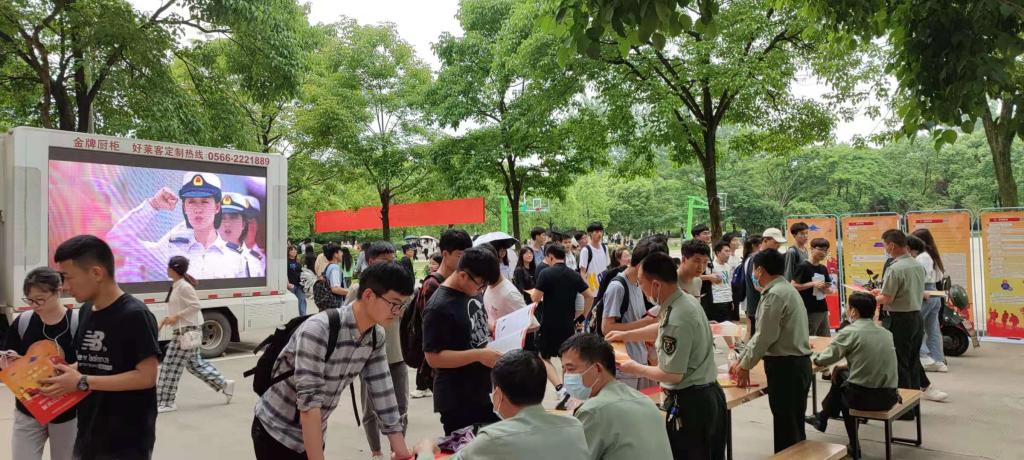 为进一步做好大学生应征入伍工作,5月21日,beat365邀请贵池区人民武装部到校开展大学生征兵宣传工作。