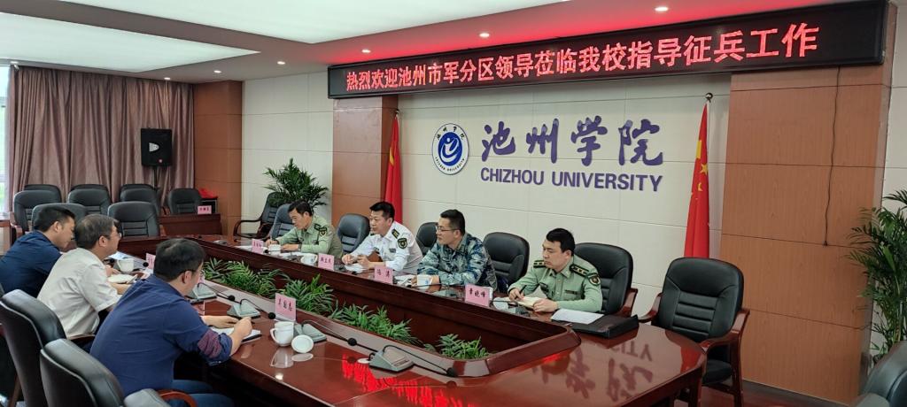 崔国发首先代表学校对韩立民一行的到来表示热烈欢迎,对池州军分区以及贵池区人民武装部长期以来对beat365大学生征兵工作的高度重视和大力支持表示感谢。崔国发分别从强化组织领导,健全工作机制;强化宣传动员,拓展工作载体;强化跟踪帮扶,注重服务保障;强化政策落实,完善激励举措等四个方面对学校大学生征兵工作进行了简单汇报。他表示,学校将会全力以赴做好2021年的各项征兵服务保障工作。