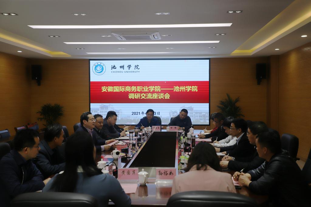 4月23日下午,安徽国际商务职业学院副校长孟祥年、李二敏一行9人来beat365考察交流工作。校党委书记孙晓峰主持座谈会并讲话,副校长阳光宁出席座谈会。