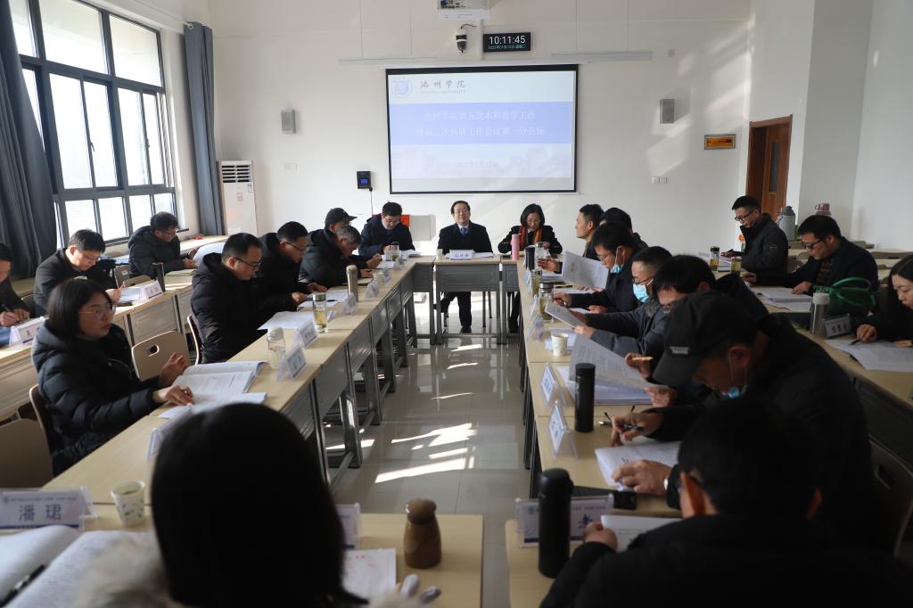 就进一步做好教学科研工作,张立驰强调,要坚持立德树人根本任务,构建高质量人才培养体系落实立德树人根本任务;不断提升办学层次,着力创建一流学科;持续加强内涵建设,着力创建一流专业;全面推进精品课程建设,着力创建一流本科课程;强化师德师风建设,着力创建一流本科师资队伍;积极改革评价机制,深入推进各项教学科研改革,更新教学科研改革观念;加强质量文化建设,强化教学质量保障体系;提前谋划准备,积极迎接新一轮审核评估,确保“十四五”规划各项工作顺利推进,为2026年成功申报硕士点单位,乃至实现中长期发展目标——创办池州大学奠定基础。
