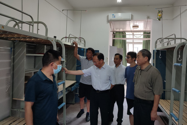 王延寿、汪海一行先后查看了学生公寓出清项目、主教学楼附属工程建设、逸夫楼、艺术楼外墙维修工程、文学与传媒学院实训中心建设等工程项目,充分肯定公共教学楼附属工程等基建与维修项目的暑期工作力度和工程建设进度,并要求后勤管理与基建处及施工单位要进一步抢抓工期、严把质量、安全施工,确保按质按量完成暑期基建与维修工程,为新学期开学提供优质设施和优美环境。