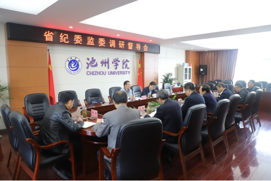 4月15日,省纪委监委第八纪检监察室四级调研员周平一行来beat365调研督导党委履行主体责任和纪委履行监督责任情况。校党委书记孙晓峰,校长柳友荣,党委副书记崔国发,纪委书记、监察专员汪海,副校长阳光宁出席会议,办公室、纪委办、组织部、宣传部、教务处负责人参加会议。