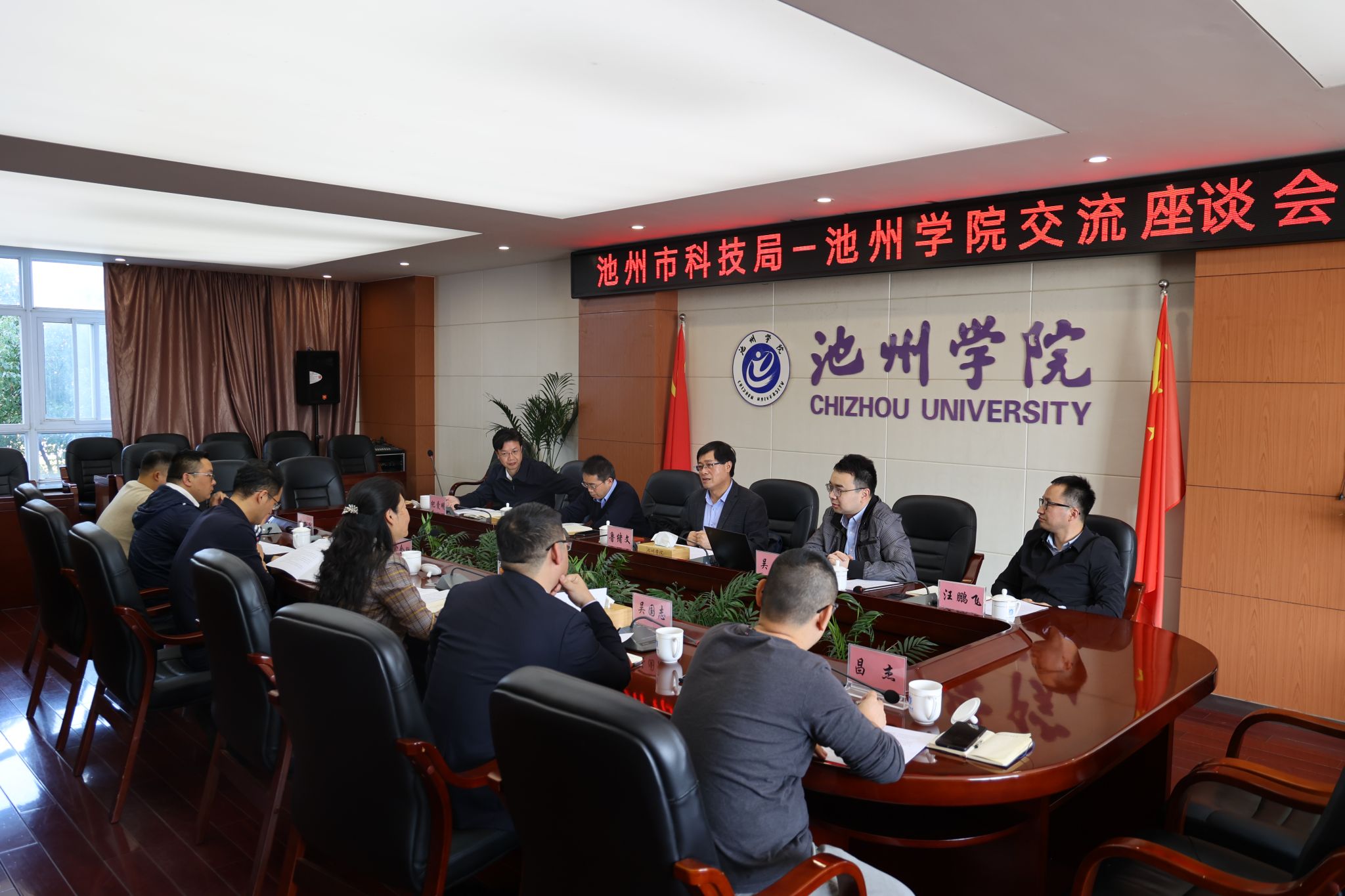 池州市科技局相关负责同志,学校科研处、材料与环境学院主要负责同志及相关专业教师参加会议。