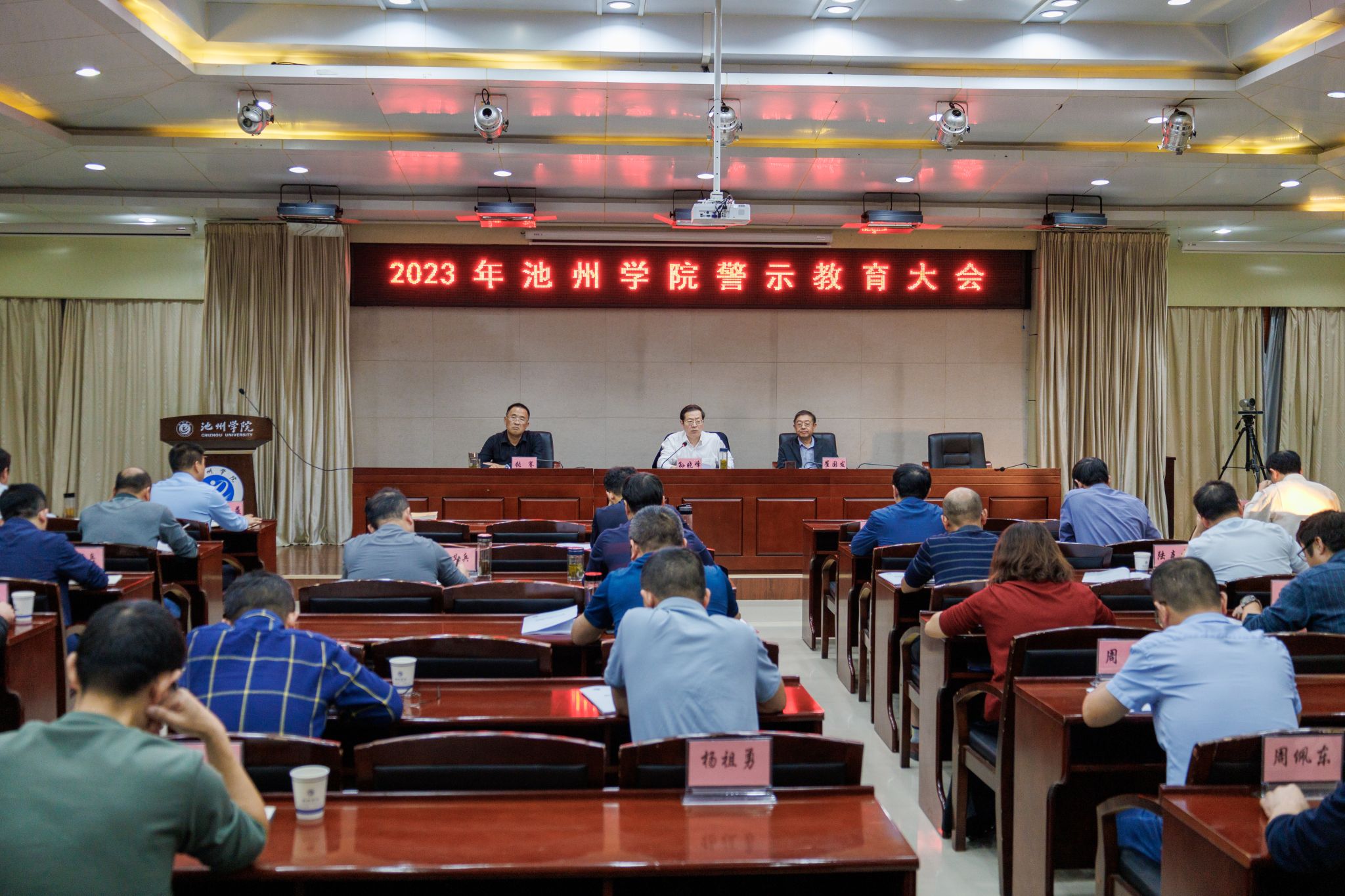 10月18日,学校在行政南二楼会议室召开了2023年警示教育大会。党委书记孙晓峰出席会议并讲话,校领导崔国发、张赛出席会议。会议由党委副书记崔国发主持。