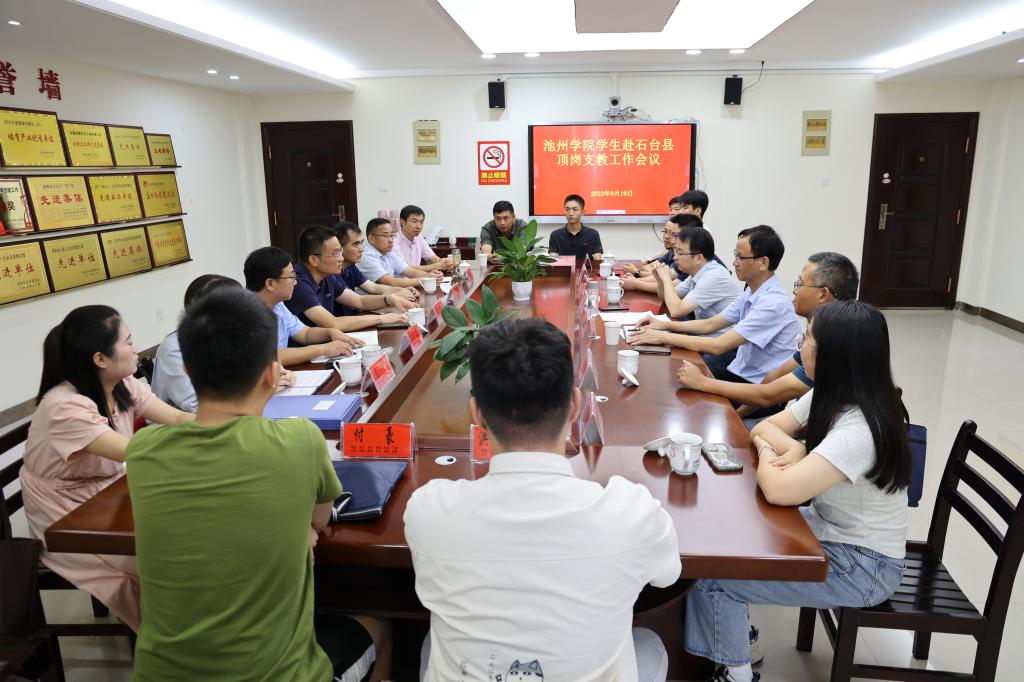 石台县教体局,beat365党委宣传部、教务处、大数据与人工智能学院、体育学院、艺术与教育学院等单位相关负责人参加活动。