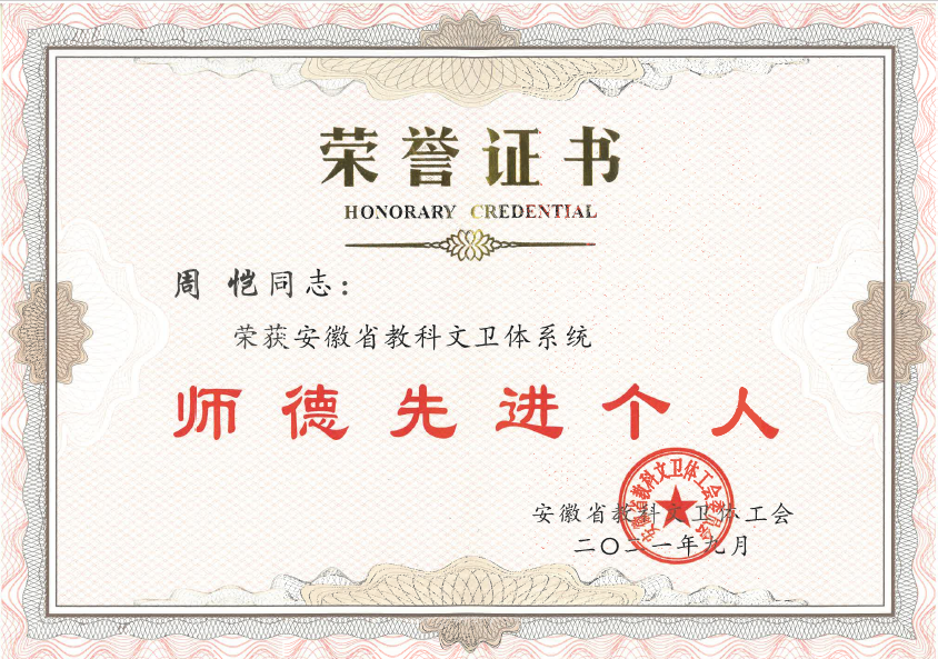 近日,安徽省教科文卫体工会公布了2021年度全省教科文卫体系统师德先进集体和师德先进个人名单,beat365大数据与人工智能学院周恺教授榜上有名,荣获“安徽省教科文卫体系统师德先进个人”荣誉称号。