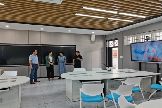 郑兰荣对程雁雷一行来beat365指导法学教育工作表示热烈欢迎,对长期以来关心支持法学院建设发展表示感谢,并陪同参观了法学院知识产权专业实验实训室、模拟法庭等设施。